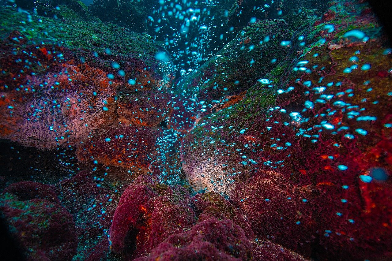 Paul Rosero рассказал, что концепция проекта строится на двух физических уровнях: то, что было исследовано и зафиксировано над и под водой. Галапагосские острова, как известно, имеют вулканическое происхождение, и большинство вулканов остаются действующими. Один из таких — подводный вулкан Рока – Редонда, послуживший платформой для научных и художественных осмыслений. Здесь в пузырящейся кальдере обитают загадочные виды кораллов. Они являются индикаторами изменения химического состава океана и способствуют пониманию уровня подкисления, в свою очередь связанного с выпуском человеческой цивилизацией зашкаливающего количества СО2 и глобальным потеплением в целом. Так как природа кораллов особо чувствительна, и даже малейшее повышение температуры на 2 градуса при изменённом химическим составе воды уже не дают им возможности к дальнейшему размножению. Такие, не столь жизнеутверждающие выводы, не слышно легли на колоритно-медитативный визуальный ряд видео-работы под названием Purple haze. И как пел Джими Хендрикс в своей Фиолетовой Дымке (Purple Haze) 1967 года: