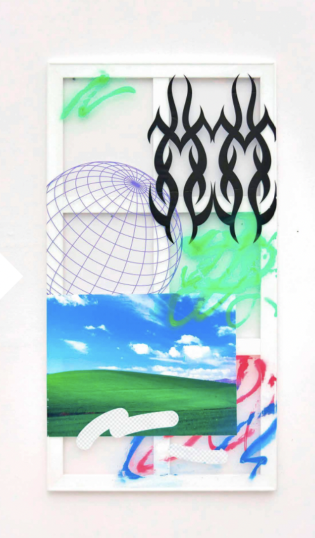 Миша Гудвин также совмещает цифровое и материальное с использование различной привычной для своего поколения символики digital, стрит-арта и поп-культуры.