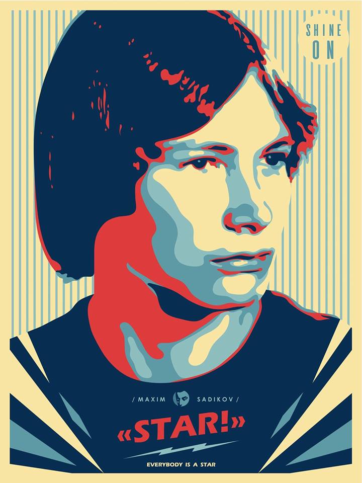 Сначала я думал его представить как рок-звезду или как выдающего спортсмена. Суперстар! Параллельно вспоминал и уже регулярно прослушивал песню группы The Roots - Star, в которой звучит сэмпл со словами «everybody is a star», группы Sly&The Family Stone. И постепенно пришло четкое понимание того, что эту работу я хочу посвятить каждому из нас! Каждому сердцу, каждой звезде! А имя Максим Садиков – это всего лишь спонтанный результат игры слов на тему названия духов моей подруги Zadig&Voltaire.