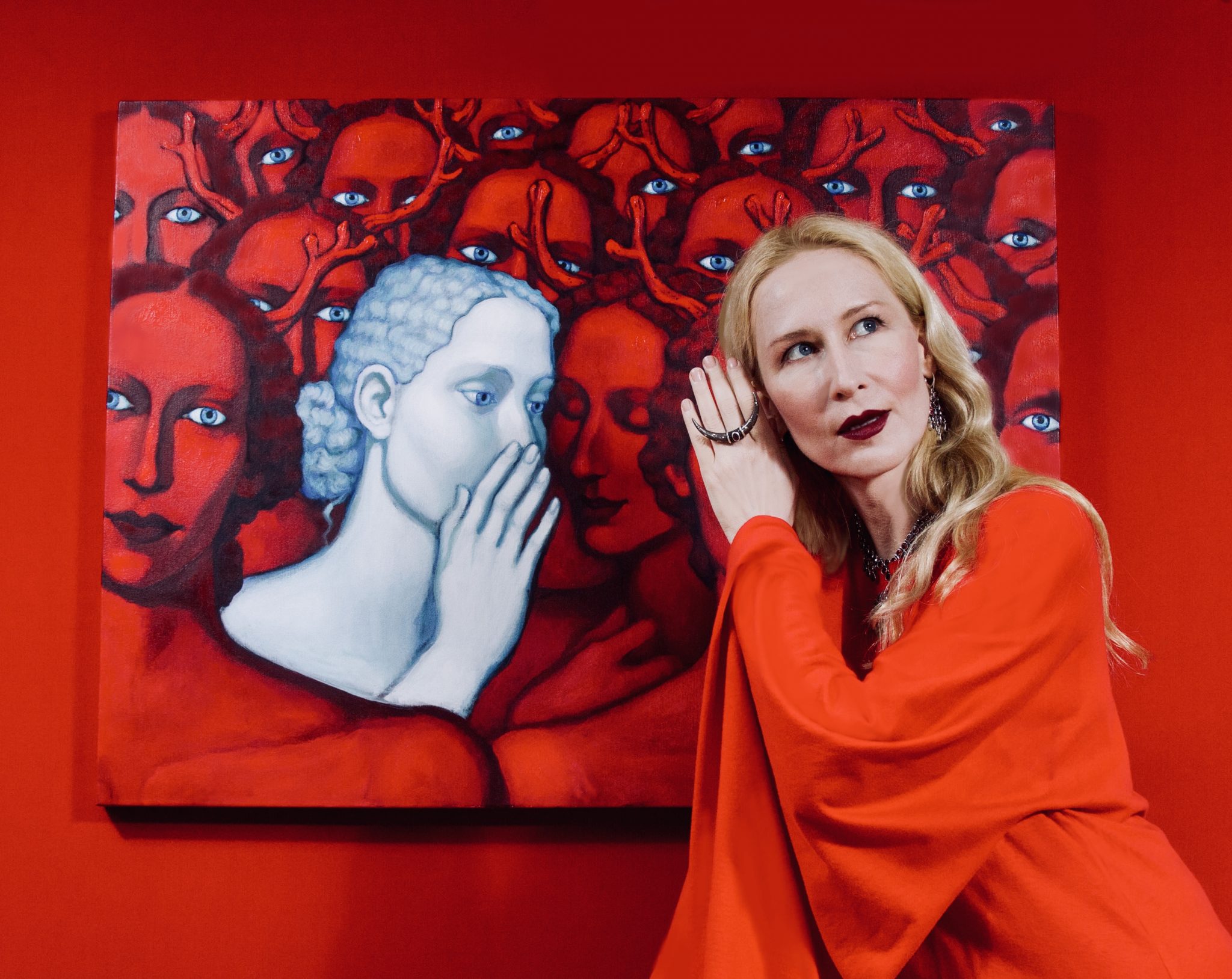 Вы знаете, вообще все художники рисуют с утра до вечера только себя. Даже когда они рисуют других людей. От себя не убежишь. Рисуешь картину — рисуешь себя. Иногда я это делаю осознанно, иногда - неосознанно. Это могут быть мои части личности или символы, которые мне легче выражать, придавая им мои черты. Всегда на первом месте символ. Даже если я пытаюсь нарисовать себя, то это только отчасти автопортрет. Это всегда что-то еще, какое-то исследование. Хотя какие-то картины - про женский архетип, но в целом все же о человеческой натуре. Ведь у нас такая странная система: мы - наполовину дух, а наполовину - зверь.