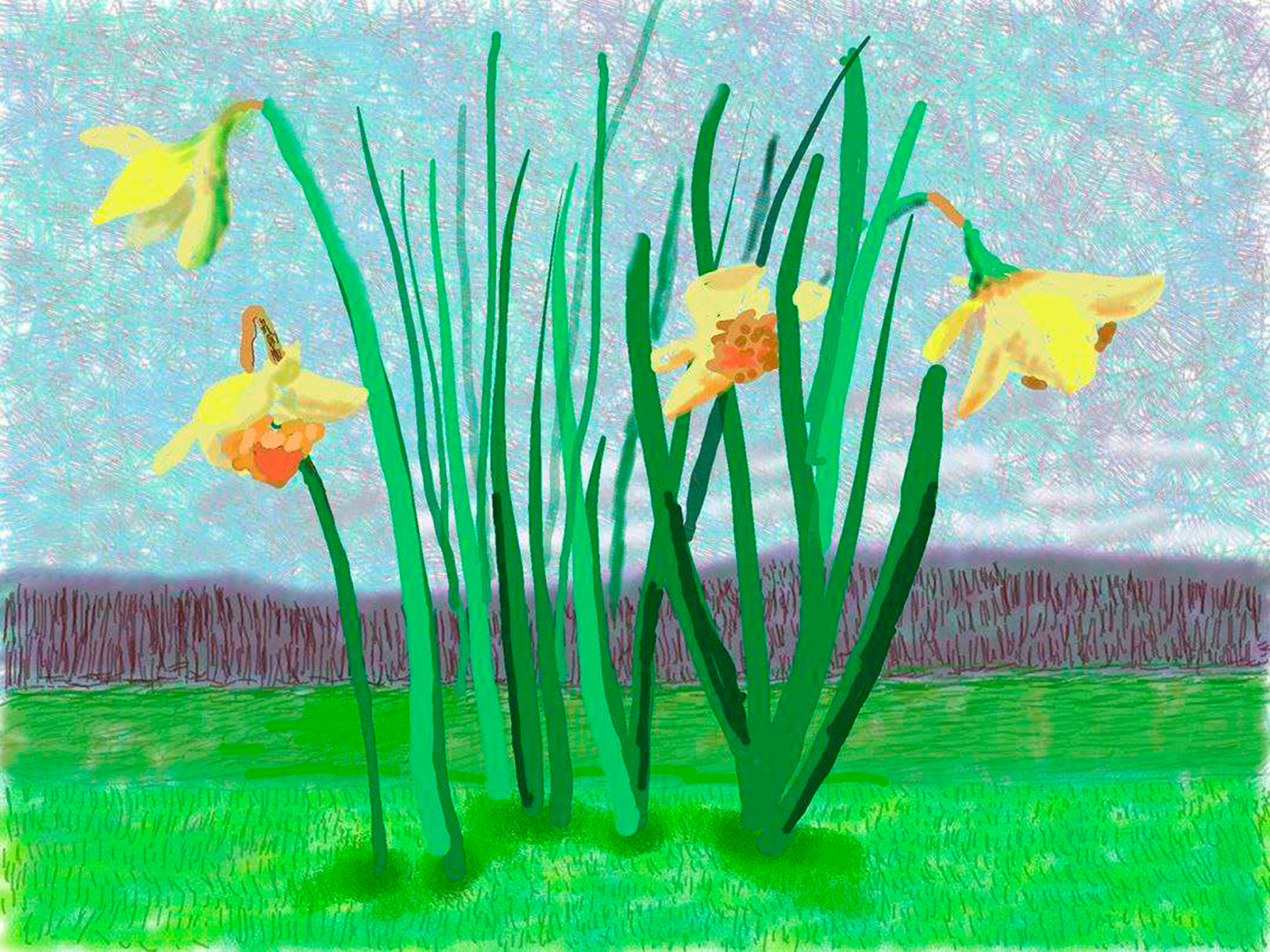 В 2020 году музей современного искусства Луизианы выложил на своей странице в инстаграм рисунок Хокни, сделанный на iPad. Художник изобразил букет нарциссов как символа весны и надежды на лучшее, чтобы поддержать людей, запертых на карантин.