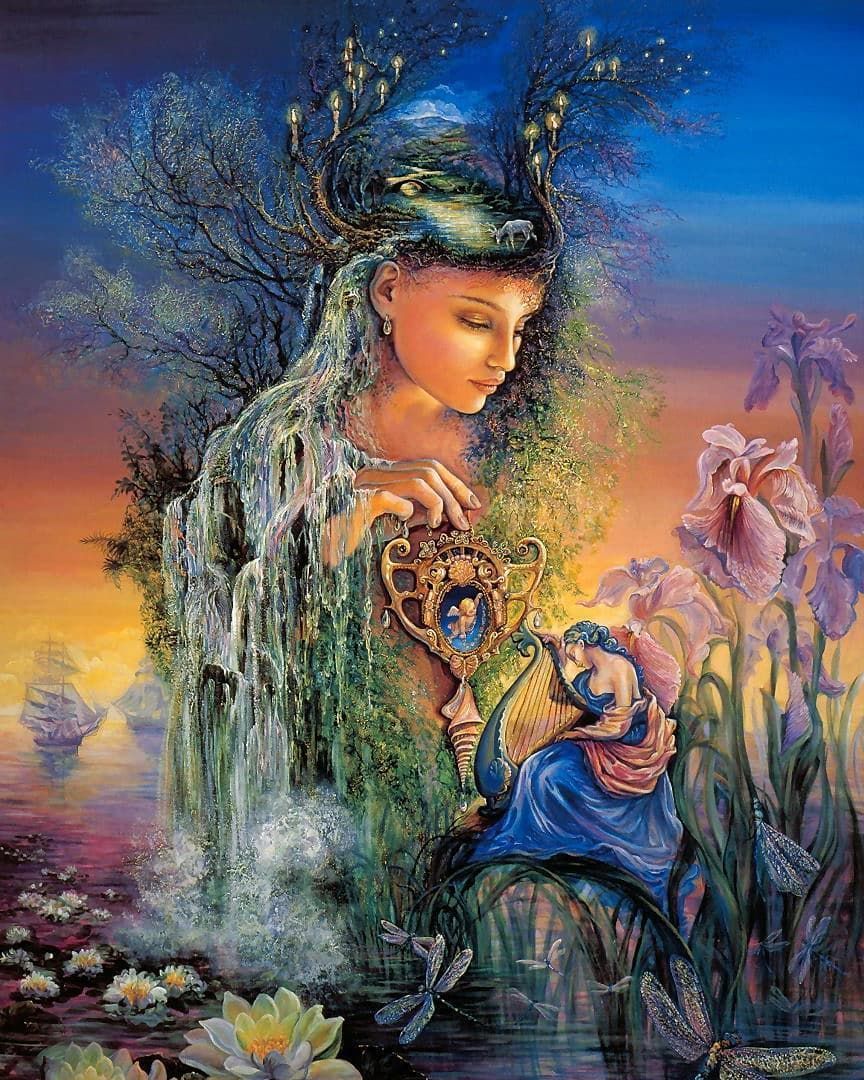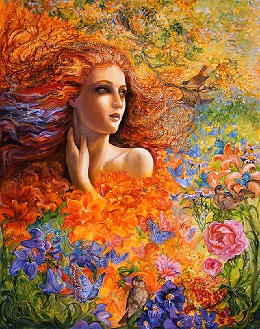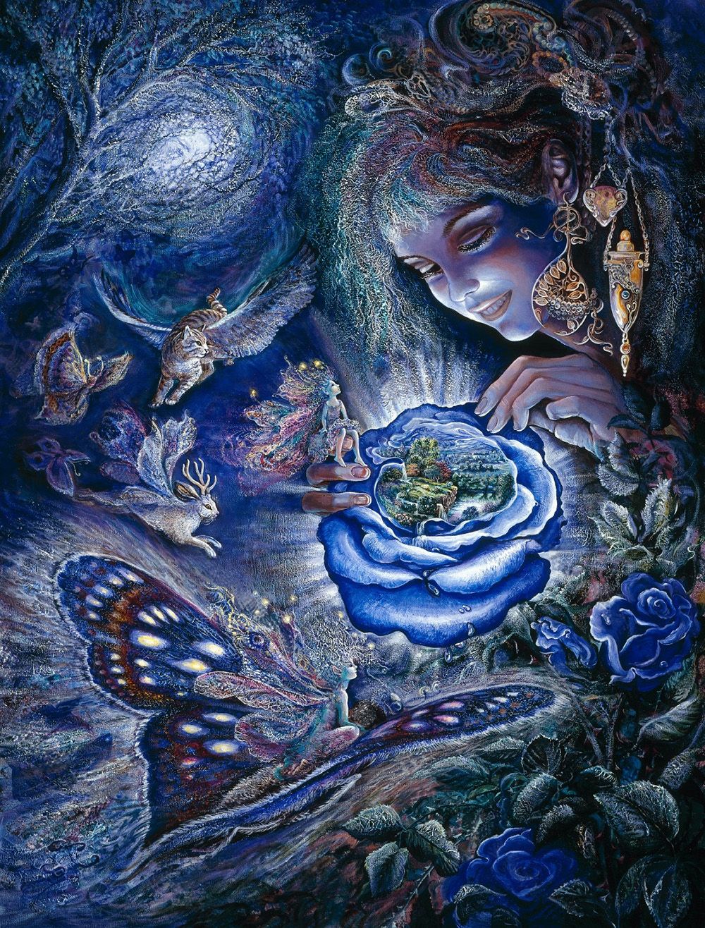 На полотнах Жозефины оживают сказки старой Англии: изумрудные холмы и вересковые пустоши, феи со стрекозиными крыльями, изящные эльфы, мудрые волшебницы и прекрасные королевы. Художница говорит, что очарована странным и чудесным с самого детства – ей всегда нравилось соединять причудливые, не связанные друг с другом образы так, как это делают сюрреалисты.