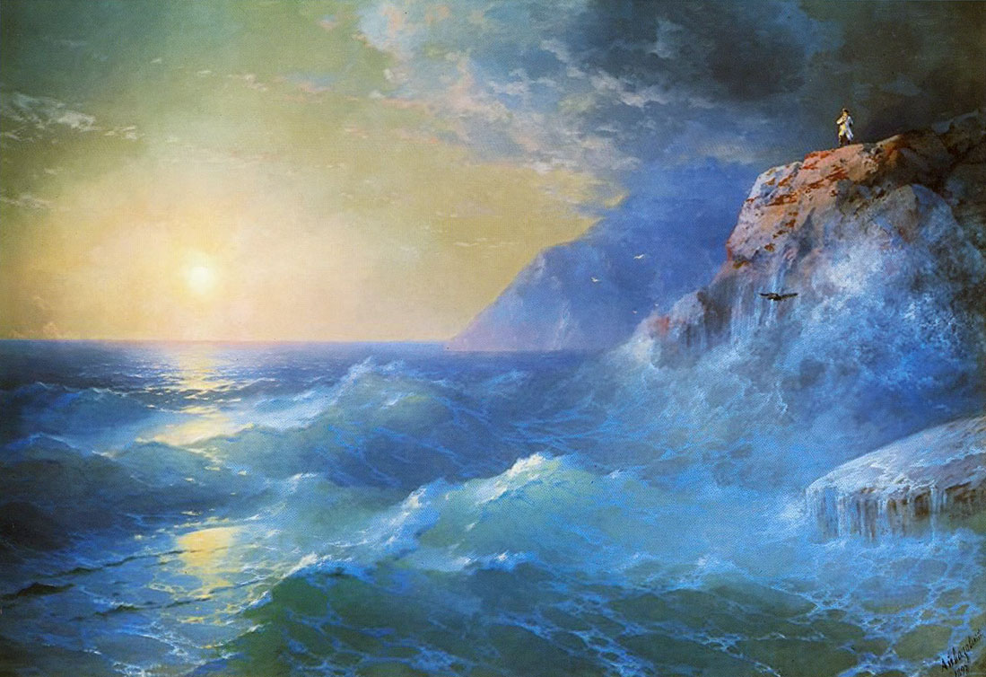 Когда смотришь на его картину «Пушкин на берегу Черного моря» думаешь только об одном: «Поэт тут явно лишний: только пейзаж портит». Неудивительно, что сам художник всегда хотел минимизировать в своем творчестве изображения людей. Его намного больше интересовала стихия. Именно в ее движении можно было запечатлеть лучше всего все изменения, происходящие в душе человека.
