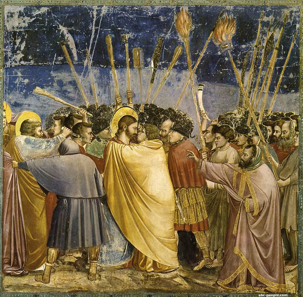 Иуда. Иуда... Человек, чьё имя является синонимом предательства, греха. В некоторых трактовках даже рогатого сюда умудряются приплести (хотя покровитель парнокопытных тут на самом деле не при чём). И вот он тут. Не дьявол во плоти, а просто человек. Человек, который не выдержал своей судьбы и, раздираемый душевной болью, покончил с собой. Причём, самым незаурядным способом – повесился. В моей голове это не укладывалось: я вспоминал фрески Джотто, где Иуда с чёрным нимбом предательски целует Иисуса. И, вернувшись, я решил проследить как же эта фигура из предателя превратилась в мученика.