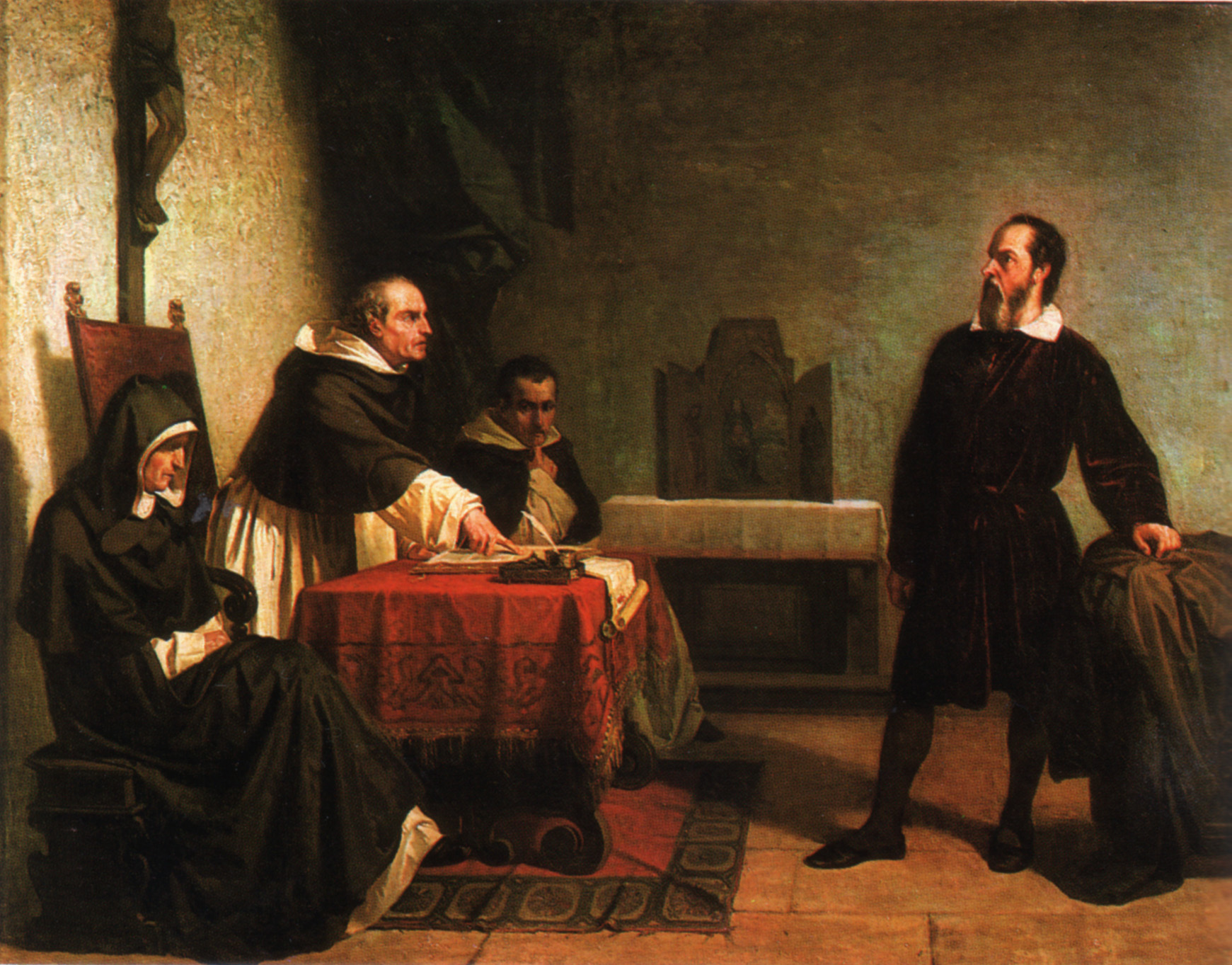 Эта картина едва избежала трагической участи. Банти был всего в шаге от непоправимой ошибки: он хотел уничтожить свое полотно, изображающее сцену явления Галилео Галилея перед инквизициторами. Стремление автора к эстетическим идеалам было столь велико, что в приступе отчаяния он вообразил, что своим произведением «опозорил искусство, не зная его».