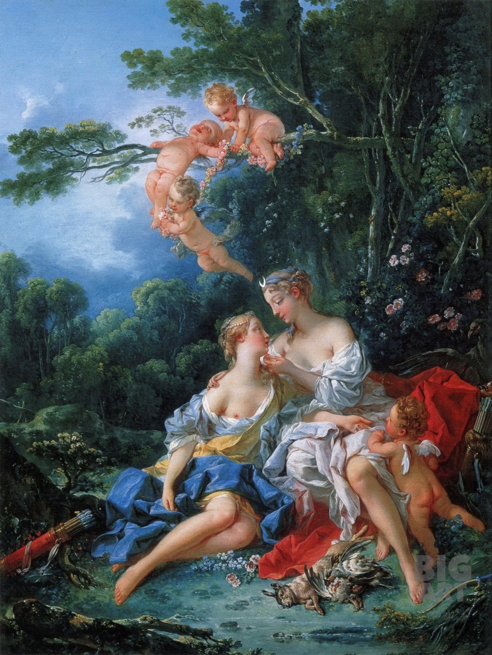 Но тут уж без обмана. Это действительно была Диана с нимфами. Они пришли искупаться, ну а как разделись, вся история с Каллисто раскрылась и несчастную выгнали из клуба охотниц.