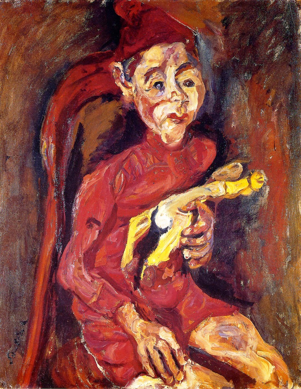 Сутин пошёл другим путём. Глазам на его полотнах нет места: либо чёрные точки, либо практически полное растворение в лице. На полотнах Рембрандта мы можем заглянуть в самую душу модели. У Сутина ровно наоборот: во взгляде мы встречаем непреодолимую стену. От написанных им портретов нам становится не по себе. Черты лица ребёнка искажены. Они просто кривые. Несоразмерно большие кисти рук, мелкое хилое тело. Мы ощущаем не торжество только начинающейся жизни, а жалость.