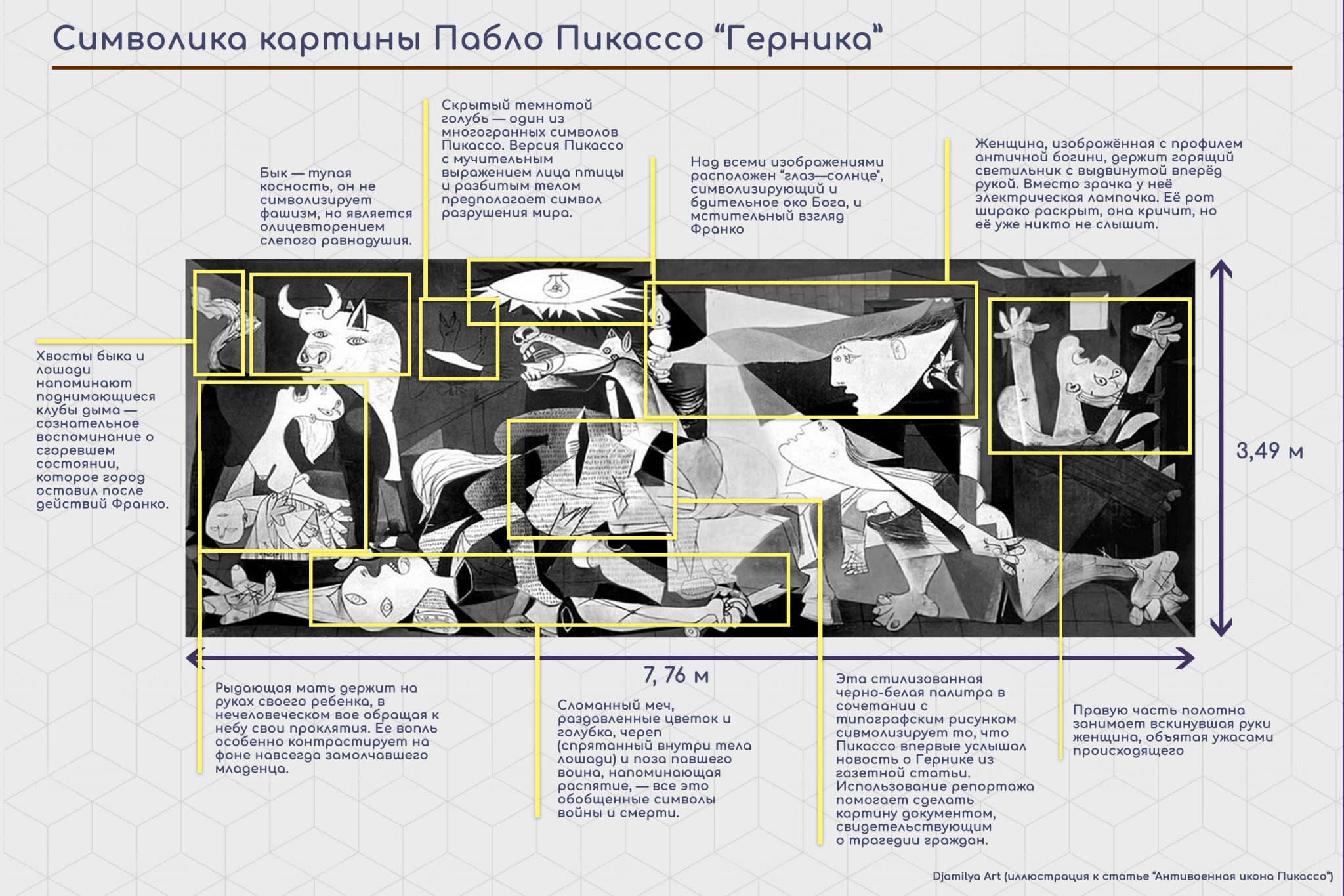 Каков лучший инструмент противостояния войне для творческого человека? Возможно ли создать масштабный протест с помощью кисти? Это удалось сделать Пабло Пикассо с помощью своей картины «Герника». Он выразил свое возмущение войной огромной росписью размером со стену.