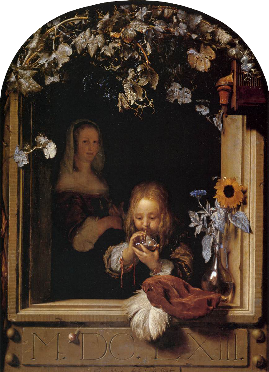 Ответить на этот вопрос может каждый, сообразно своим понятиям о человеческом назначении. Однако закончить хотелось бы не этим. Среди произведений Франца ван Мириса Старшего, несправедливо забытых широкой публикой, есть полотно, несколько выделяющееся из общего ряда. Это хранящийся в Королевской галерее Маурицхёльс «Мальчик, пускающий мыльные пузыри». Фигурка золотоволосого ребенка, поглощенного своим занятием, буквально купается в солнечном свете. Сзади, из полумрака комнаты с ласковой улыбкой за ним наблюдает мать.
