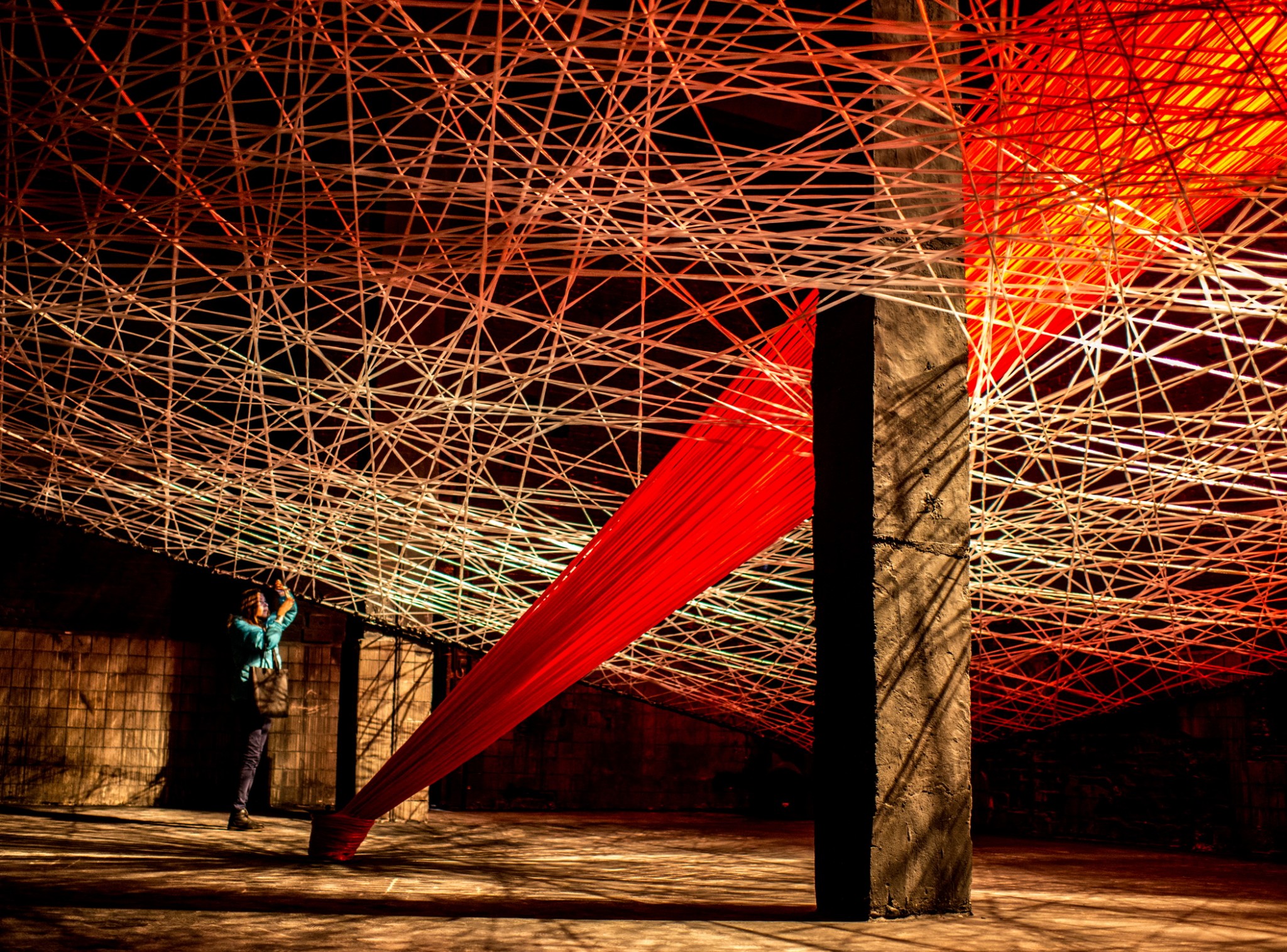 Талантливая художница Алёна Коган из Санкт-Петербурга представила монументальную инсталляцию с глубоким философским подтекстом на открытии IV выставочного сезона в Street Are Museum. В своей работе «Схема рождения нового мира», созданной из целлофановых канатов, она раскрыла тему социальной революции, заявленную кураторами экспозиции. Это третья работа художницы, выставленная в стенах питерского Музея уличного искусства.