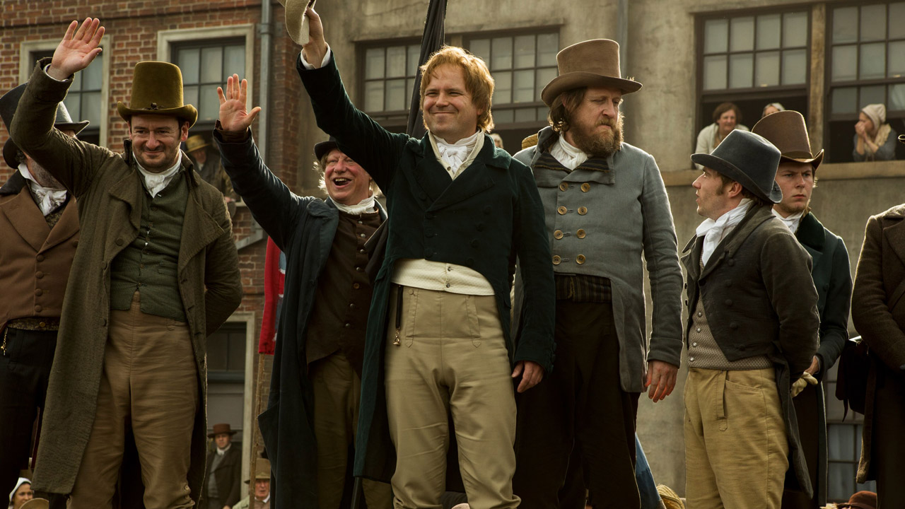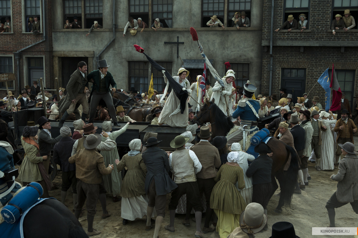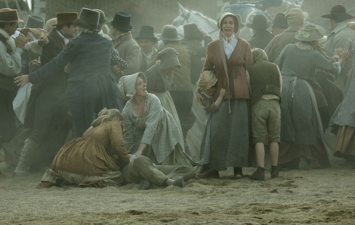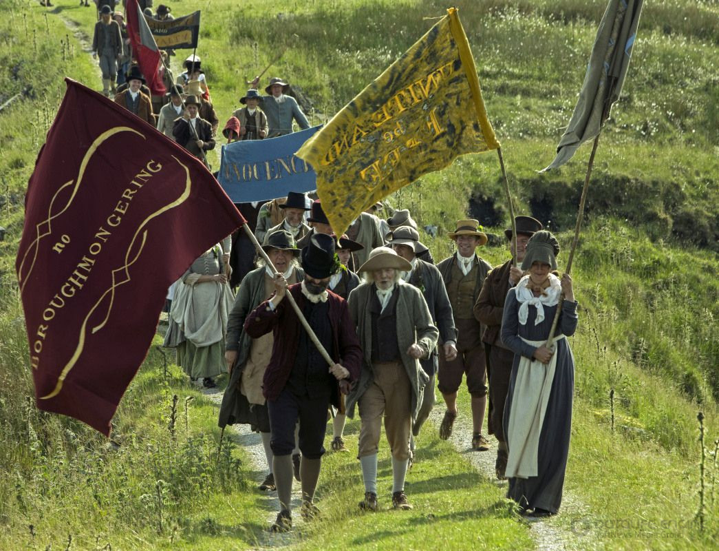 Наступает понедельник 16 августа. Вместо того, чтобы пыхтеть на работе, люди идут на площадь. Не помещающиеся в кадр хлопкопрядильный станки молчат. Народ приползает издалека. Мужья приходят с жёнами. Жёны — с детьми. У некоторых тряпичные растяжки с лозунгами за «всё хорошее». На трибуну поднимается Генри Хант. Вместе с ним всевозможные местные реформаторы и журналисты из нескольких газет.