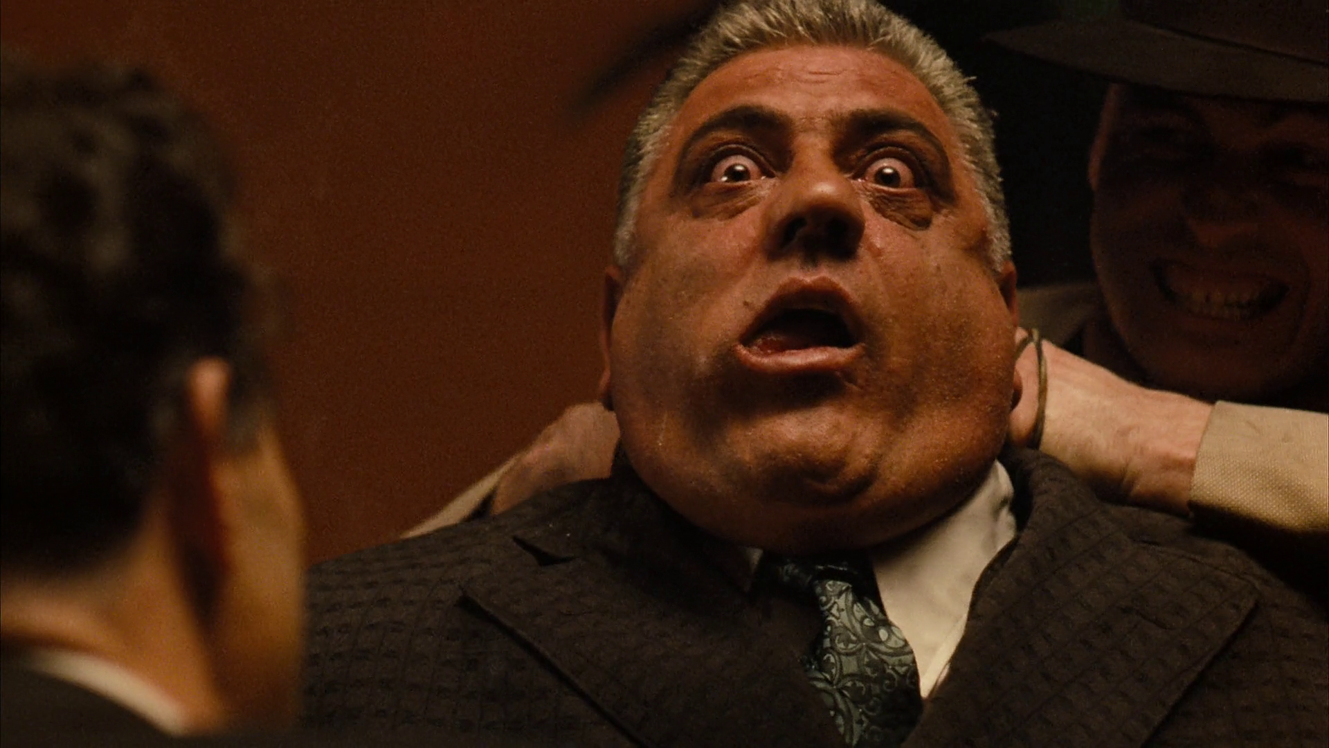 Ну и конечно же стоит отметить и саму режиссуру. Это первый фильм Копполы, который позволил говорить о нём, как о гениальном режиссёре. Можно перечислить множество художественных моментов в чём это выражается, но в силу формата, я опишу только одну сцену. Это смерть старого дона Корлеоне. Старый монстр, играя со своим внуком в оранжерее, хочет стать ещё страшнее и засовывает за губы апельсиновые корки. Мальчик реально пугается и убегает, но тут чудовище хватает удар, он падает. И его последних вздох, вместе с которым из тела исторгается душа душегуба, символизирует трепыхающийся на ветру белый навес, натянутый над растениями. Прекрасная сцена.