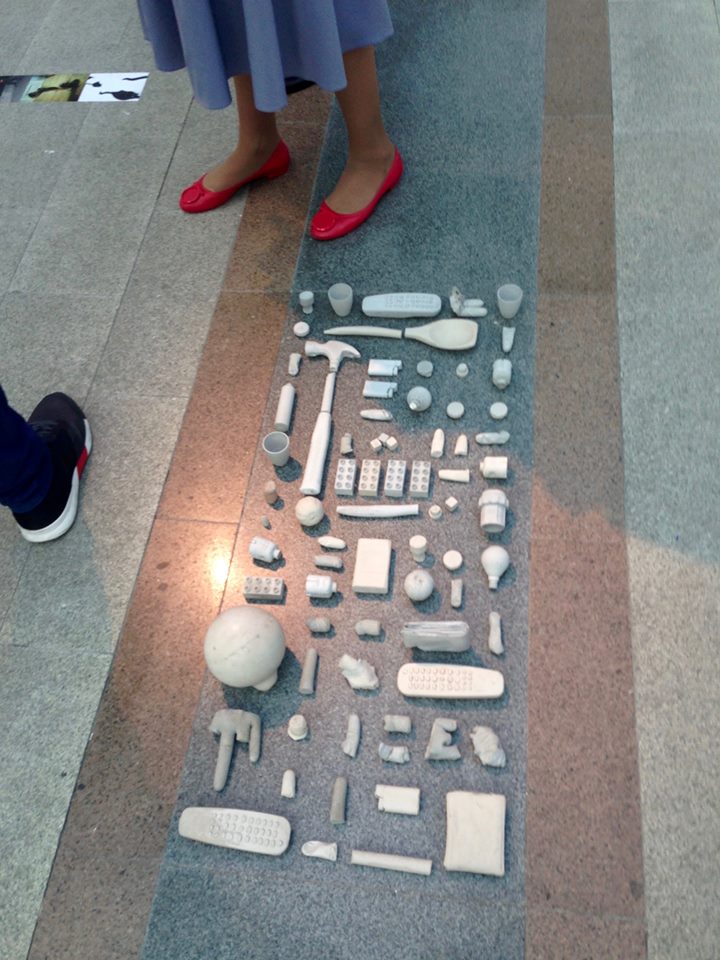 Напольный фрагмент инсталляции от норвежской Rake был дважды снесён неуклюжей ногой посетителя.
