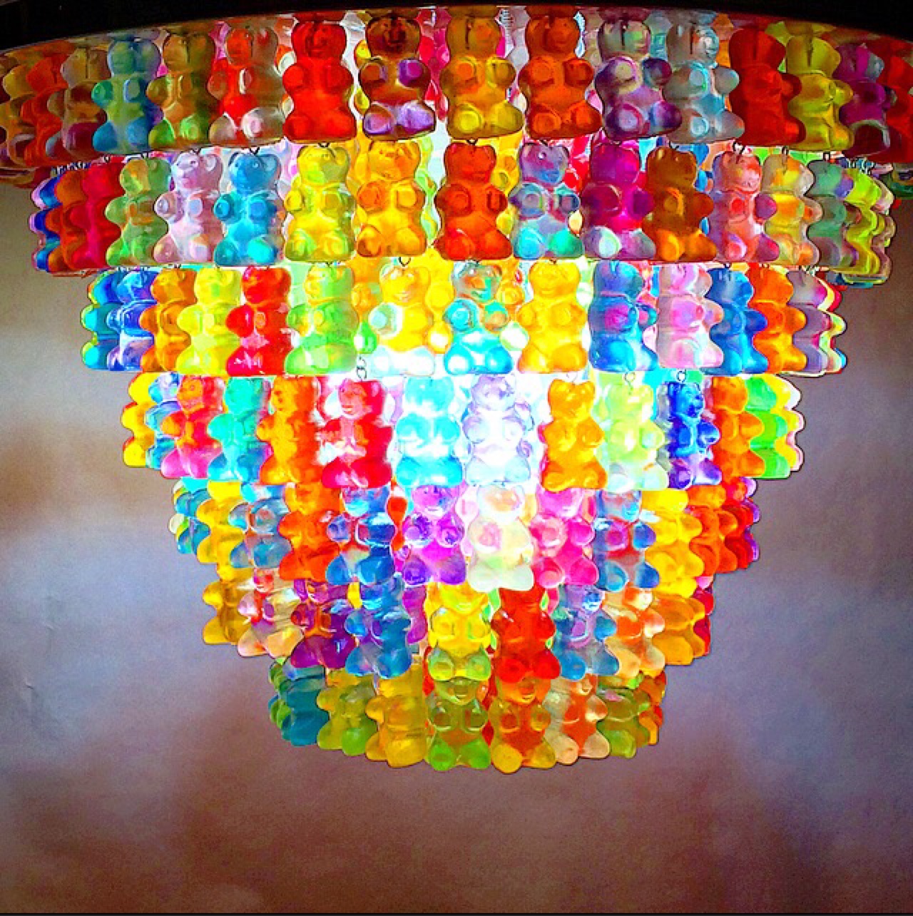 Работы художника - это не только произведения искусства, но и вполне применимые в быту предметы. К примеру, лампы из гильз от автомата или мармеладных мишек. Конечно, вы возразите, что это не очень практично - лампа из мармелада. Но и тут Чемпени удалось нас подловить. То, что на вид - самый настоящий мармелад, на самом деле оказывается акрилом. Разливая его по формочкам, в которых действительно делают конфеты, Кевин сознательно вводит зрителей в заблуждение.