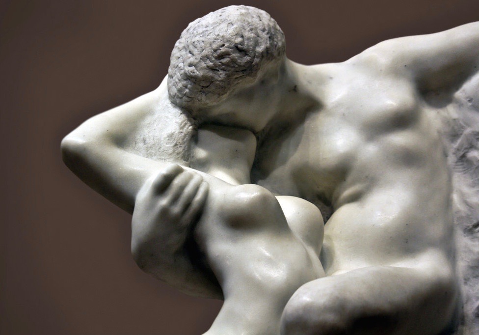 Изначально это были знаменитые влюбленные, Паоло Малатеста и Франческа да Римини. Но, так как эта скульптура сильно выбивалась из группы «Врата Ада», Роден отделил её и назвал «Поцелуй». Если вы видели этот шедевр в мраморе, да еще и при талантливо выставленном свете, согласитесь, от него невозможно оторвать глаз.