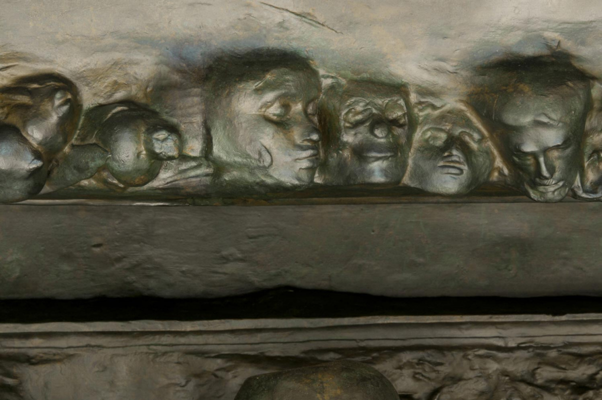 Пройдёмся по деталям. Они тут очень важны. Это не только ощущение века. Это ещё и биография скульптора, его философские взгляды, его литературные предпочтения. Ясно, что в основе сюжета всей композиции лежит «Божественная комедия» Данте Алигьери. А, если говорить точнее, его «Ад»: