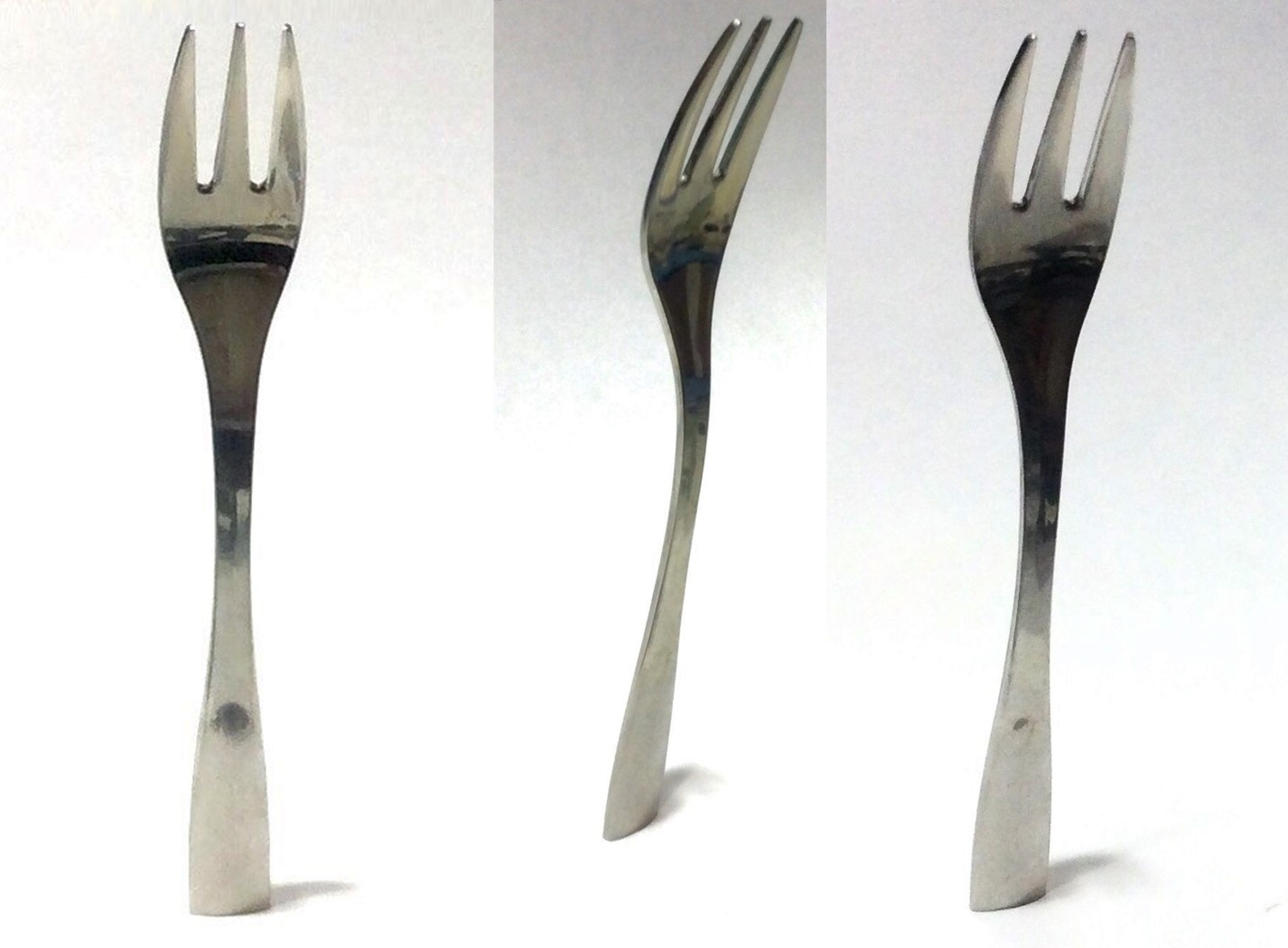 Берем тот же объект, не придумываем сложных историй, а даем другое название – Ожидание. И вот уже само слово дает нам отсылку к звучанию приметы! Дальше зритель способен самостоятельно перенести идею ожидания на незавершенность падения символичного столового прибора. Сама форма вилки, той же десертной, для кого-то - чуть агрессивная, для других - изящная и хрупкая, задает личное отношение к произведению. Готовый арт-объект открывает столь глобальную тему – человеческие взаимоотношения. А в этих отношениях есть и внутренняя форма, для каждого своя, и разные типы ожиданий, незавершенности. Для всего этого не нужно никаких пояснений – только название.