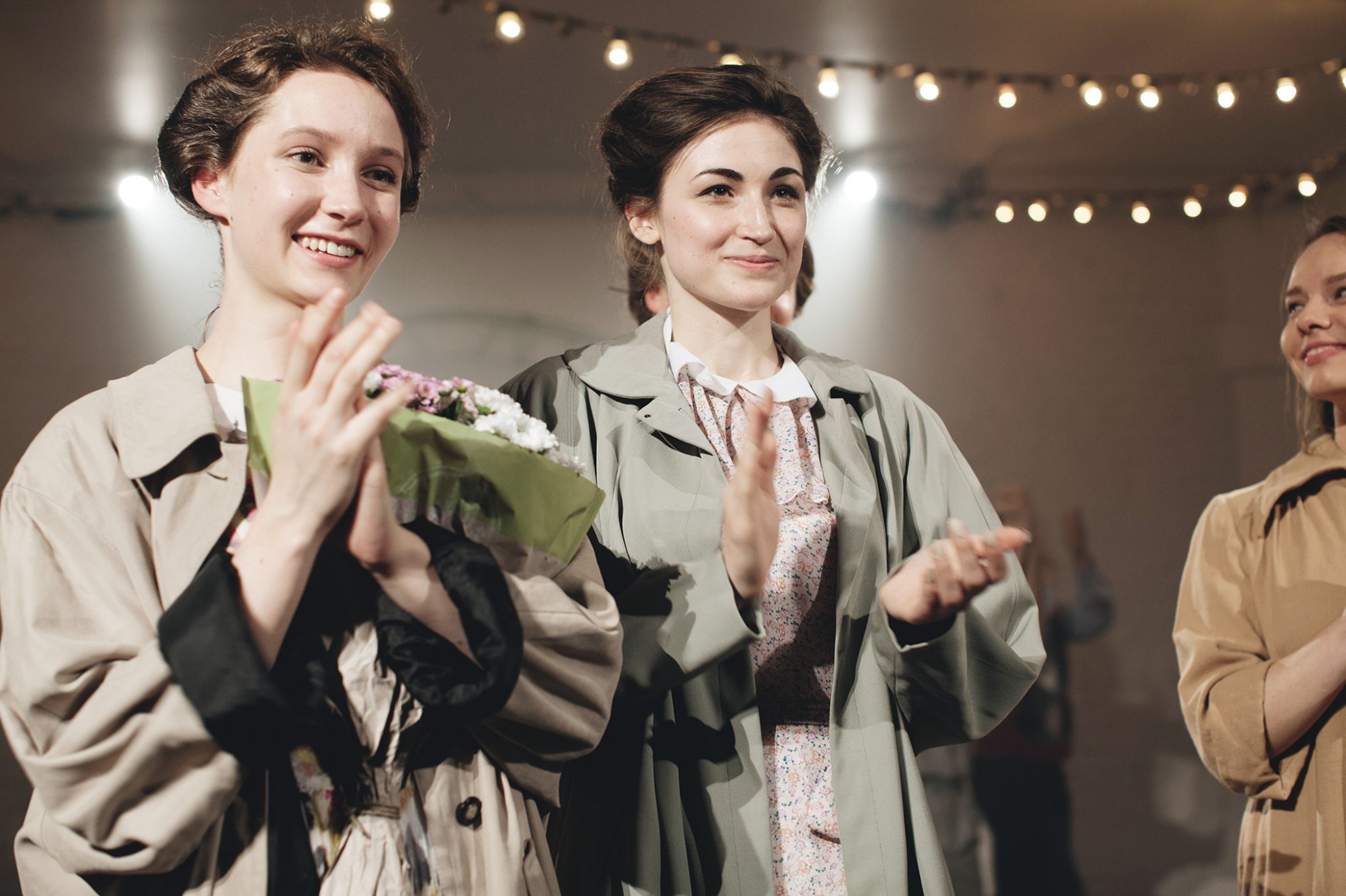Иммерсивная часть спектакля сделана очень мило. Четыре Любы все время до третьего звонка будут бегать среди зрителей, искать киномеханика и пытаться стрельнуть лишний билетик. А персонал пытается выставить их из зала, даже жалко девушек. Поэтому, когда Люба (Елена Плужникова) попросила лишний билетик у меня, я с радостью предложил ей свой, час постоять – не поле перейти. Моя любезность, однако, принята не была. Скорее всего, потому что рядом стояла еще одна Люба (Анастасия Сысоева), но, в любом случае, ситуацию решить было можно. С пресс-секретарем театра МОСТ мы дружим, места для двух любознательных девушек точно бы нашлись, да и стояла она не в Люберцах, всего этажом ниже. Я было убедил их оставить нелегальности и решить ситуацию полюбовно, как подбежала третья Люба (Ксения Берелет) и забрала моих Люб с собой. И любо вам сидеть на чужих местах! В общем, любообилие вокруг меня все-таки привело меня на место, указанное в билете. Хотя я не любитель раскалывать актеров в образе, проработку захотелось проверить.