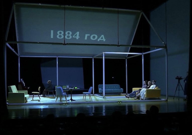 Конечно, эти произведения давно стали его тезаурусом, его личной фильмотекой и библиотекой, которые и помогают ему, Богомолову, творить собственные миры. По этой причине постановка «Трёх сестёр» — это, на мой взгляд, проекция снов и мечтаний людей, живших ещё в конце позапрошлого века, проекция в 3D, проекция на наш собственный смысловой экран современности. Отсюда и излюбленный приём режиссёра: использование широкоэкранной плазмы в пространстве сцены. И приём этот представляется вполне оправданным. Мы, зрители, и являемся теми фантомами, которые были порождены в мечтах и снах современников Чехова.