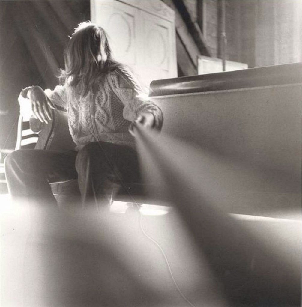 Перенесёмся в детство Франчески. Вот работа, сделанная в 13 лет. Можете ли вы себе представить, что такой шедевр создан незрелым подростком? Всё произведение полно света. Девочка сидит на стуле в тяжёлой мешковатой одежде. Сзади нечто, напоминающее рояль, но это не обязательно он, ещё дальше ― двери или доски, или что-то похожее на них. Над полом стелется непонятная серая дымка. Девочка держит в руках непонятный предмет, создающий луч темноты. Первый логичный вопрос, который приходит в голову: что же здесь изображено? Ответ прост: только то, что вы видите. Как говорила Гертруда Стайн, роза ― это роза, роза и ещё раз роза. Достаточно понимать эту простую истину, чтобы понимать творчество Франчески Вудмен. Можно попробовать ассоциировать себя с подростком на фотографии, но, скорее всего, у вас не получится. А если получится… Тогда вы больше не будете прежним.