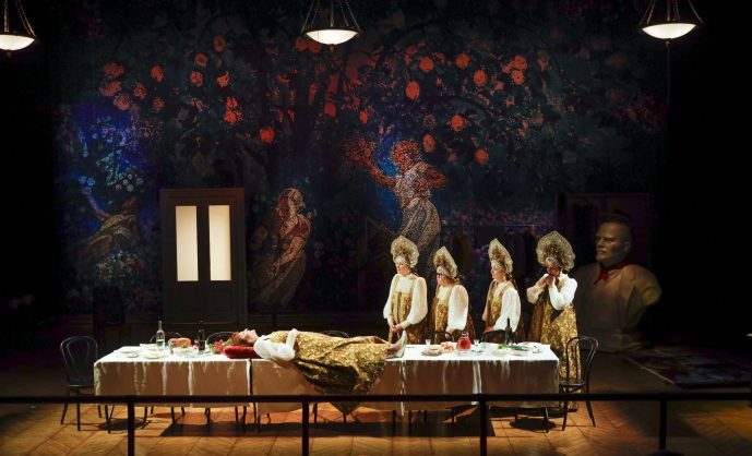 В «Режиссерских уроках Е. Б. Вахтангова» описывается репетиция первой сцены из «Принцессы Турандот» среди учеников третьей студии МХТ. Евгений Богратионович заставил не участвующих студийцев сесть вокруг импровизированной сцены, а играющие ходили между ними, переговаривались через их сидящие тела, с публикой общались сборщики податей, просили «заплатить» за представление, и так далее. Так вот сцена Арт-кафе как раз располагает к подобным «фишкам»! Маленький подиум, места для музыкантов и кулисы за занавеской – что еще нужно для площадного театра? Премьере Александра Коручекова «Сказка о Попе...