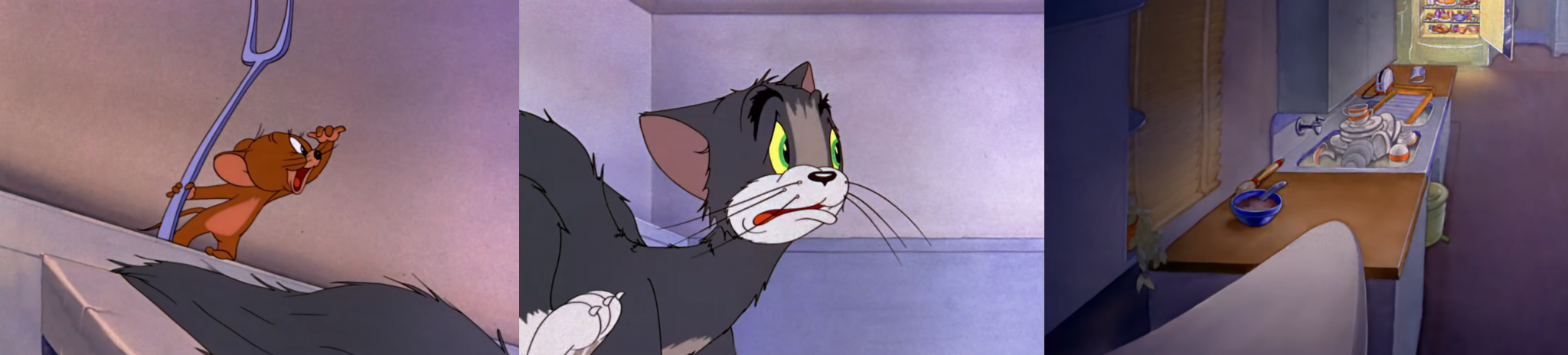 Конфликт в любом произведении — важнейшая его составляющая. Что не поделили соперники, какое событие предшествовало их ссоре — вот главные вопросы бесконечного погружения в пучины отчаяния и безумия, сопровождающие несчастных в омуте нескончаемых страданий от их собственных непомерных амбиций. Хорошо, что ничего из этого не соответствует «Тому и Джерри», потому как вся гениальность данного мультфильма в его простоте. Конфликт в нем выстроен на бытовых проблемах, отчего воспринимается еще комичнее. Самое важное в нем не ЧТО показывается, а КАК.