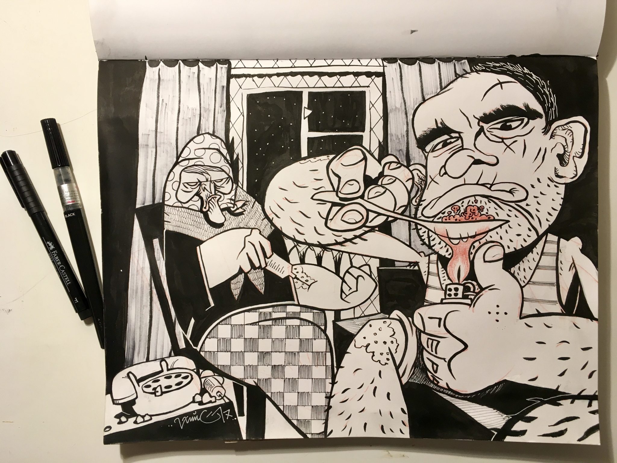 Родители отдали в художественную школу, где меня научили классическому искусству. Ну, или по-другому — как правильно держать карандаш. Я взял уроки классического рисунка и вместо того, чтобы ходить на этюды и рисовать очередные натюрморты, делать фотореалистичные портреты, начал применять полученные знания для рисования комиксов и иллюстраций.