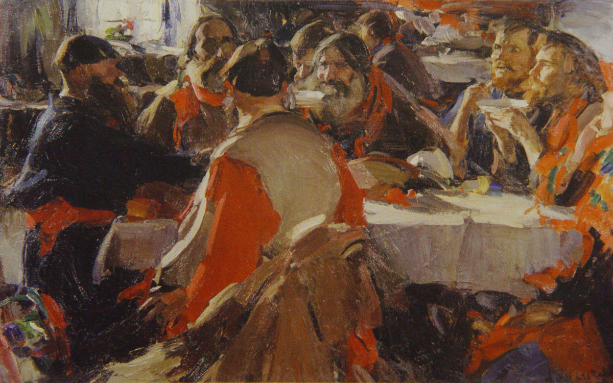 Красный цвет так же обозначает революционное настроение, потому что Архипов поддержал революцию и вошел в Ассоциацию художников революционной России (АХРР). Говорят, что Абрам Ефимович заново открыл красный цвет для российской живописи. И это очень здорово, потому что картины наших соотечественников зазвучали жизнерадостнее и звонче.