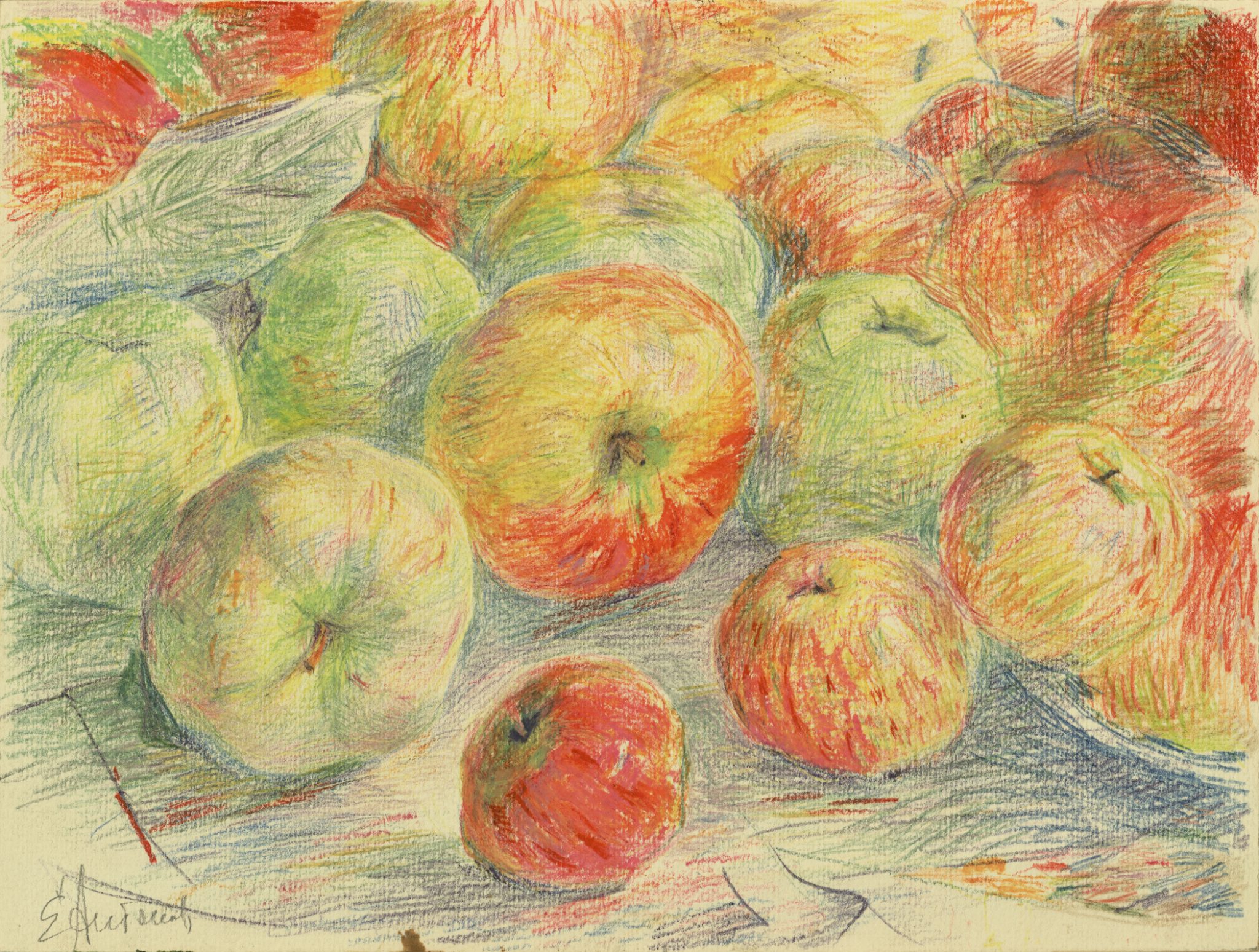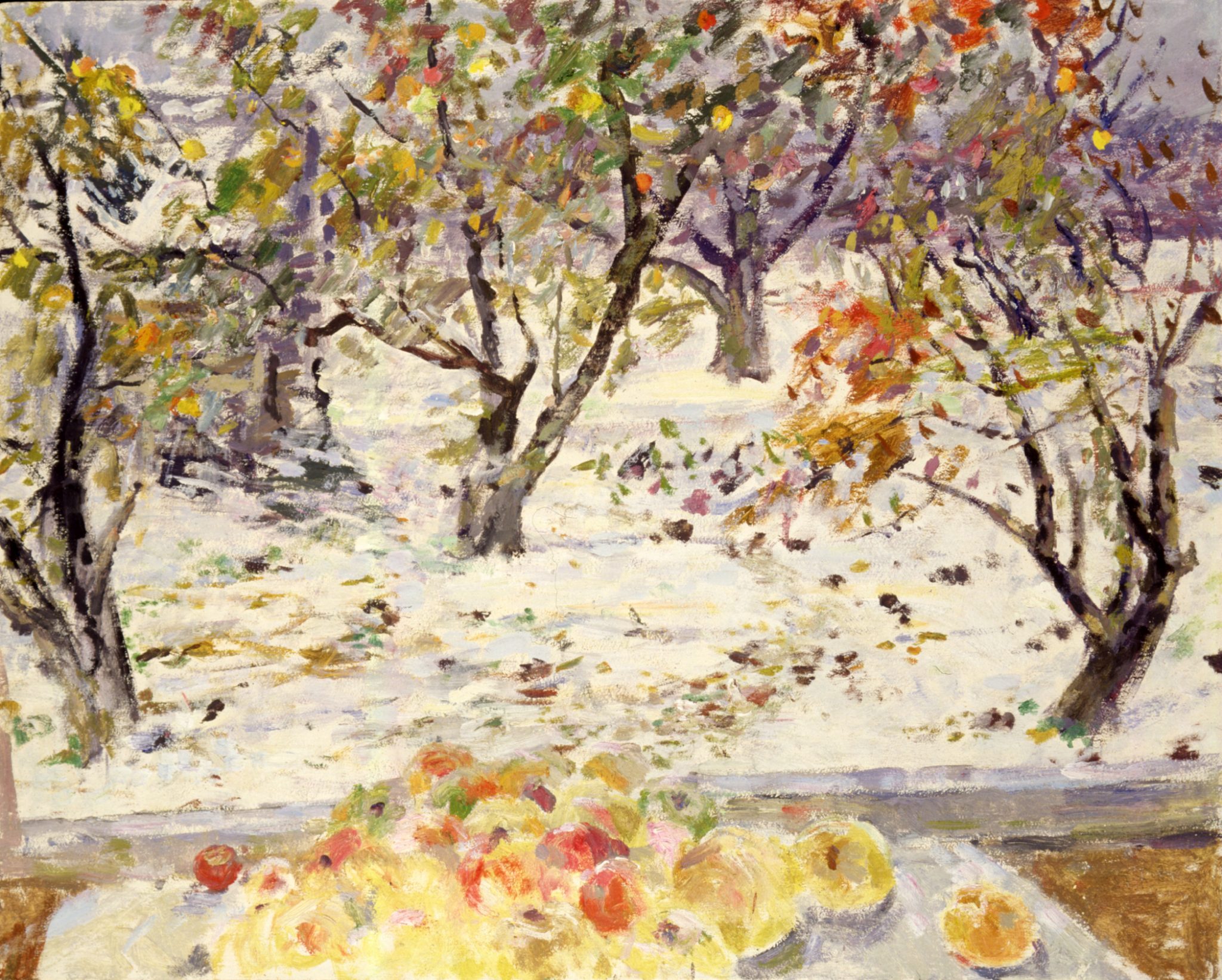 Такое человеческое решение, безусловно, печально, однако на холсте отсутствует какая-либо трагедия. Практически вся картина выполнена в теплой гамме, свет на ней очень мягкий, без резких теней. Яблоки переливаются на солнце, выглядят спелыми и сочными.