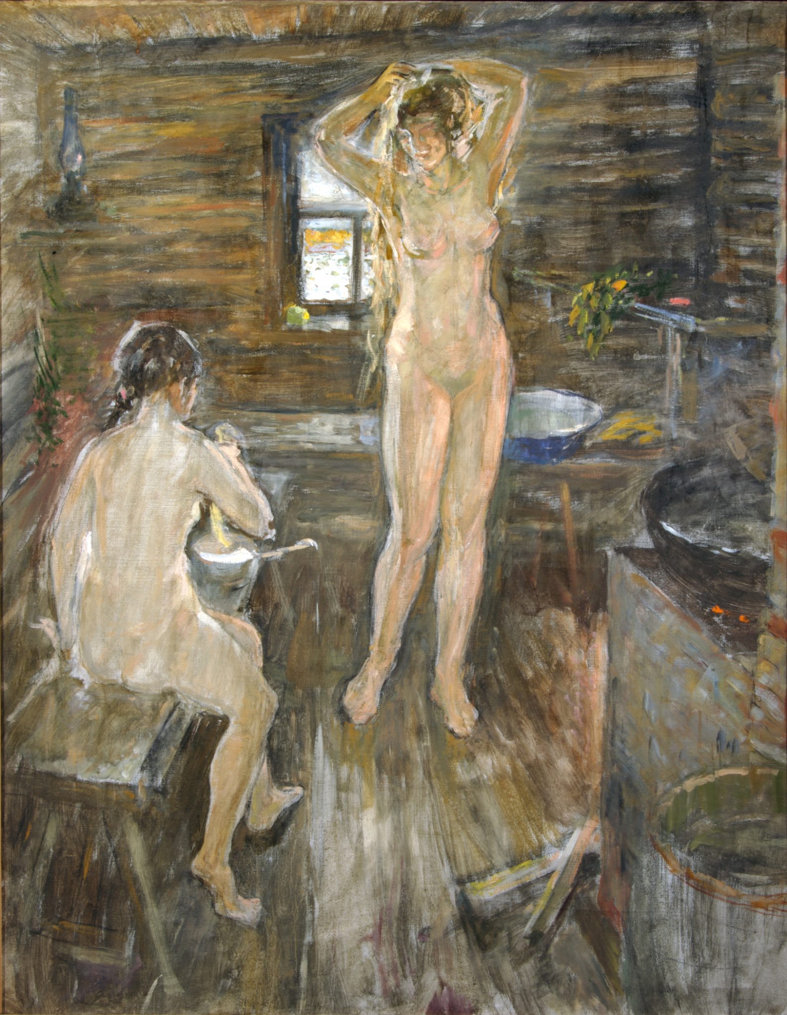 У Антонова отлично получались и бытовые сцены, самая удачная, на мой взгляд — картина «Свадьба в Ханты-Манси». Перед нами свадебное застолье в деревенском доме. Среди многочисленных родственников есть все поколения. Совсем юные счастливы, событие вызывает у них радость, они танцуют перед гостями. Люди постарше играют на музыкальных инструментах или просто стоят вокруг стола. Им нельзя сесть, потому что за столом места для людей старшего поколения и молодоженов.