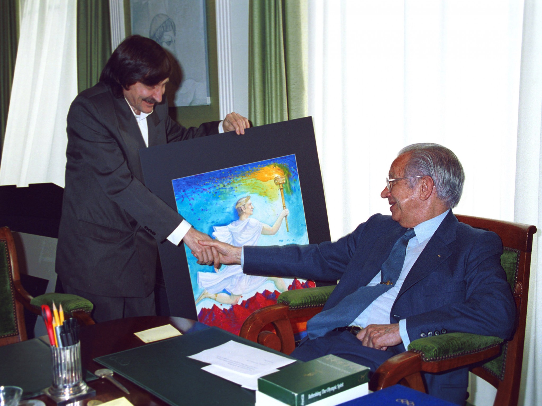 Такое сплошь и рядом: покупают одну мою картину, а потом не могут остановиться! А некоторые из них я сам с удовольствием дарю. Владимиру Владимировичу Путину, например, − работу «Строение мира» (Земля на трёх слонах), а экс-президенту Всемирного Олимпийского комитета Хуану Антонио Самаранчу — дружеский шарж, названный в честь него.