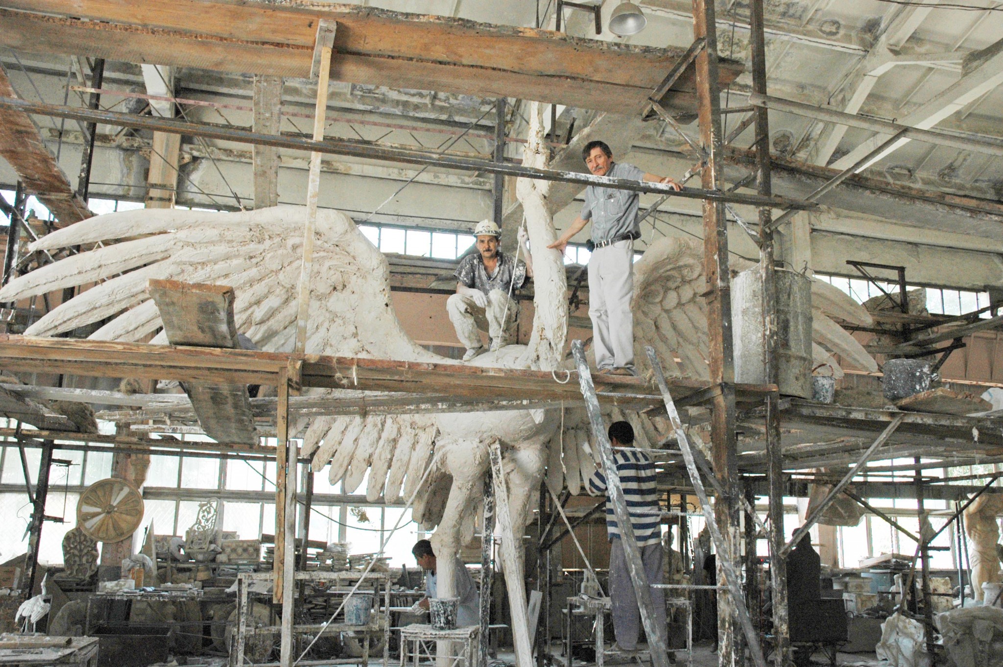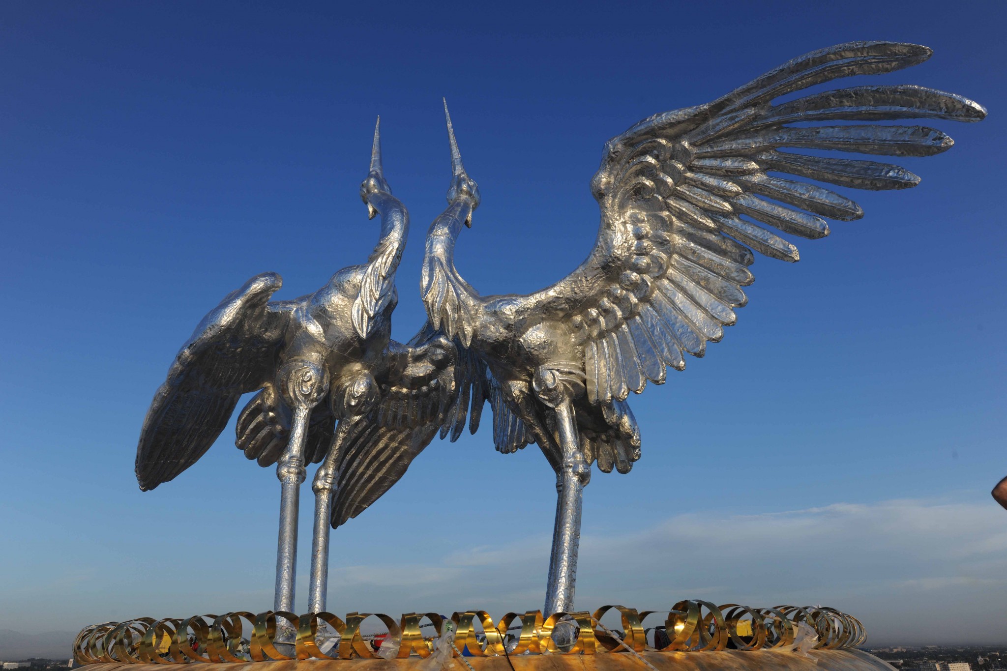 Я занимался и скульптурой. Композиция «Аисты» шесть метров высотой и восемь метров в размахе крыльев находится в Ташкенте, на здании Дворца Форумов. Её эскиз сначала проектировали на компьютере для удобства.