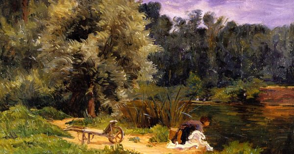 La Blanchisseuse (1890) перемещает нас в гораздо более светлое место. Очевидно, это солнечный яркий день, но на картине изображено укромное место под тенью деревьев, где солнце не слепит глаза.