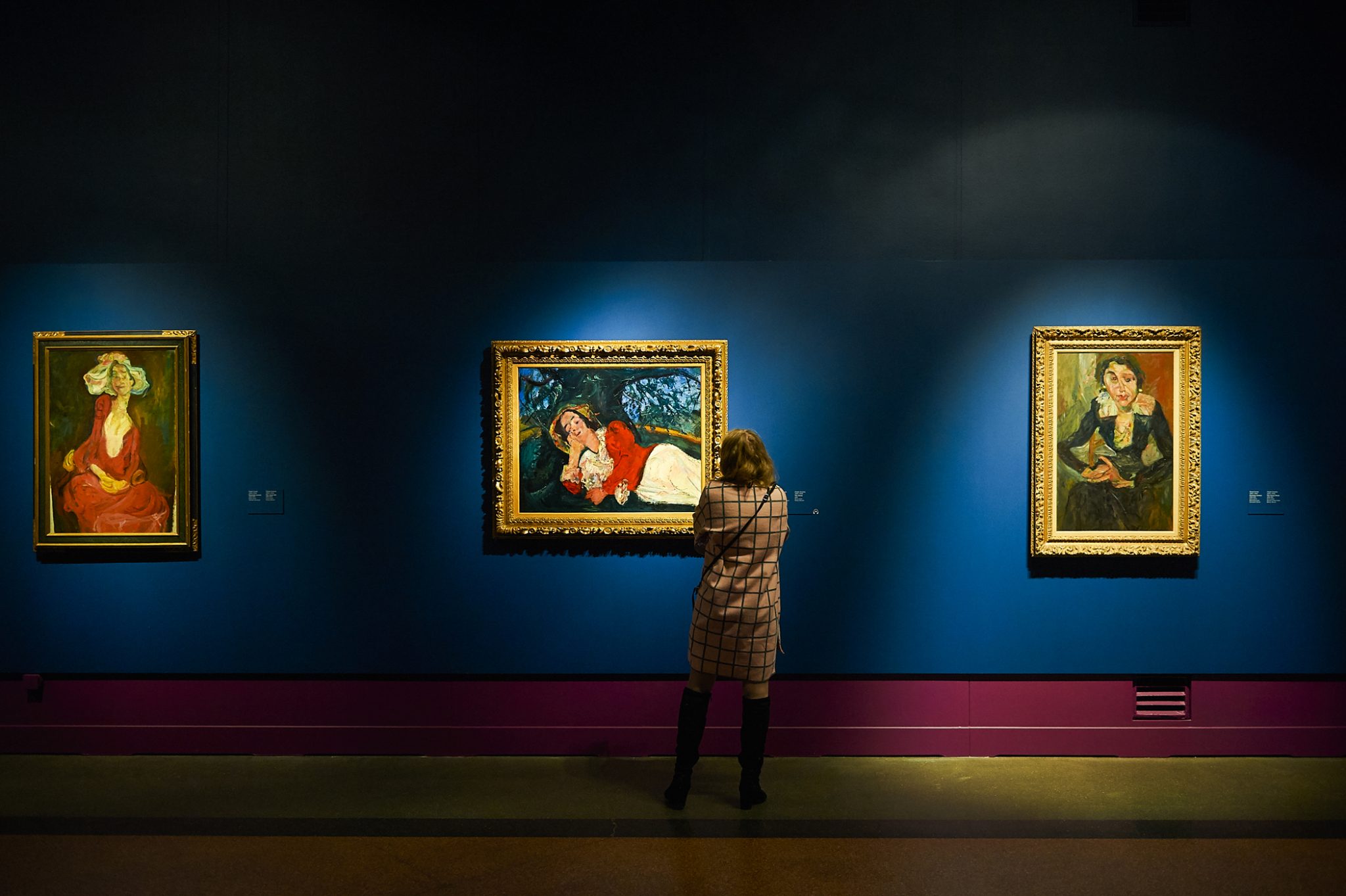 Ни рам, ни стекол не предусматривали его полотна. Их называют «холсты», когда хотят подчеркнуть это. И фон темно-синий, на таком подобии бархата в Третьяковке висит Врубель. Давящая обстановка общественного интереса и имя Сутина – это не совместимо. Экспонирование неестественно для него. И в этом ключ – показать преемственность и качественный вес, словно он - русский классик, овеянный славой двух веков. Мы наслаждаемся, потому что положено наслаждаться, и смотрим, потому что прославленный художник.
