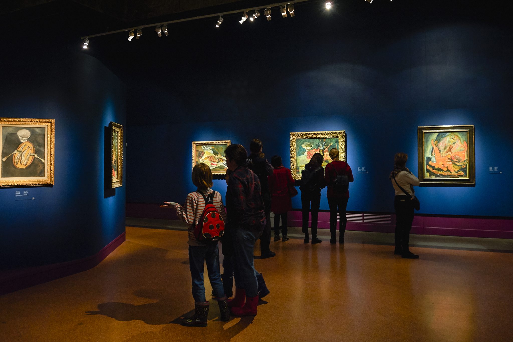 Волнующаяся цветная лужица, в которой угадываются - а при ближайшем рассмотрении хорошо видны - черты человеческого лица. Автопортрет Хаима Сутина (1921), им кураторы Клэр Бернарди (Музей Орсе) и Сурия Садекова (ГМИИ им. А. С. Пушкина) открыли выставку, и это трогательно – художник встречает своих гостей. Вход оформлен, как игрушка-конструктор из дерева. Мальчик, вошедши, немного растерян, не того ожидал, – это такое искусство, Яшечка, – объясняют ему родители, – нужно включить воображение – а он бы сразу полез трогать. Хаиму Сутину на автопортрете почти тридцать лет…