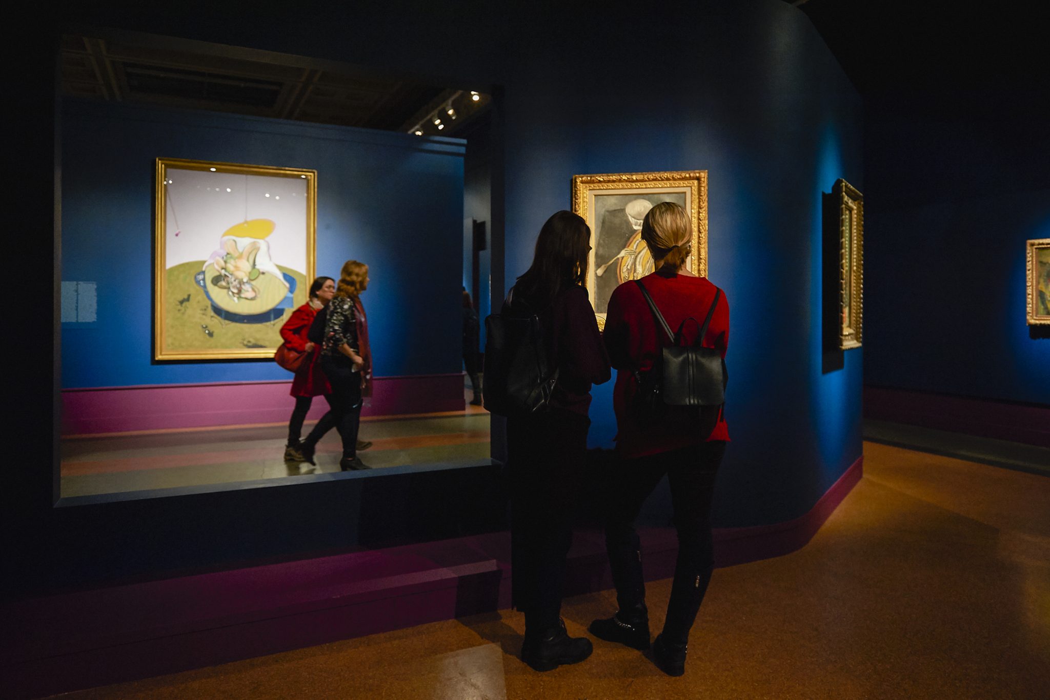 Мир, Труд, Свобода, Равенство, Братство, Счастье – на глазах Хаима Сутина то, к чему хотелось бы относиться бережно, принимает форму лозунгов. Искусство становится нарисованным очагом Папы Карло. На самом деле, интересно, что значит вторая заповедь: бывает, выходит на трибуну как Б-г, а в бытовом отношении – человек. Не сотвори себе кумира. И творчество Хаима Сутина – обратная сторона восхищения. Портретный подготовляет войти в главный зал. На стенке, их отделяющей, как душевые кабины от бассейна, разместили «Лежащую фигуру» (1969) Френсиса Бэкона.