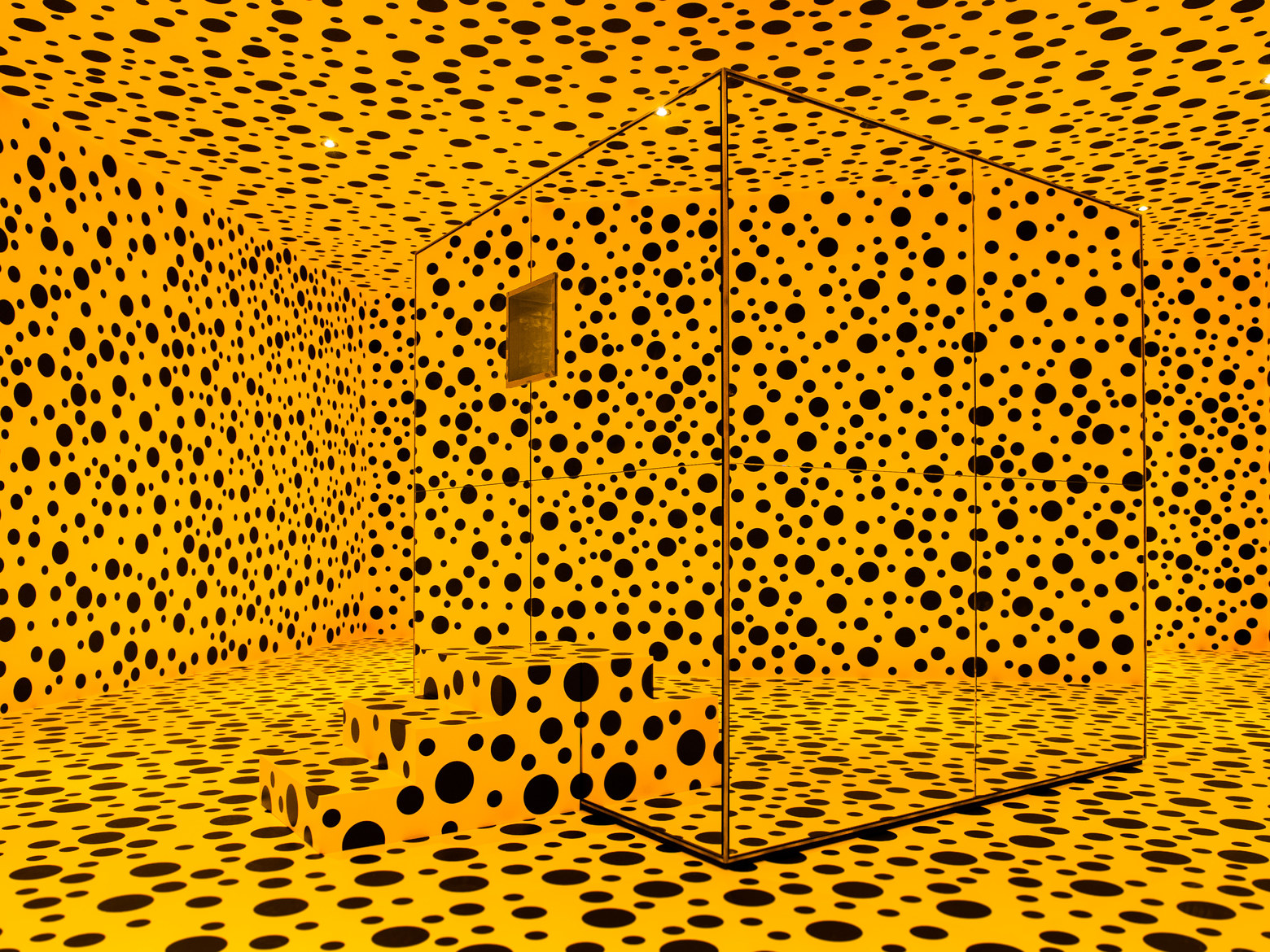 Особенный психоделический мир и бесконечное количество одинаковых круглых обличий делают границы между реальностью и иллюзией едва различимыми. Работы Яёи переносят в таинственный и гипнотизирующий мир, принадлежащий только ее воображению. А может, стоит и на себя примерить видение художницы? Каково это вообще — заблудиться в бесконечности?