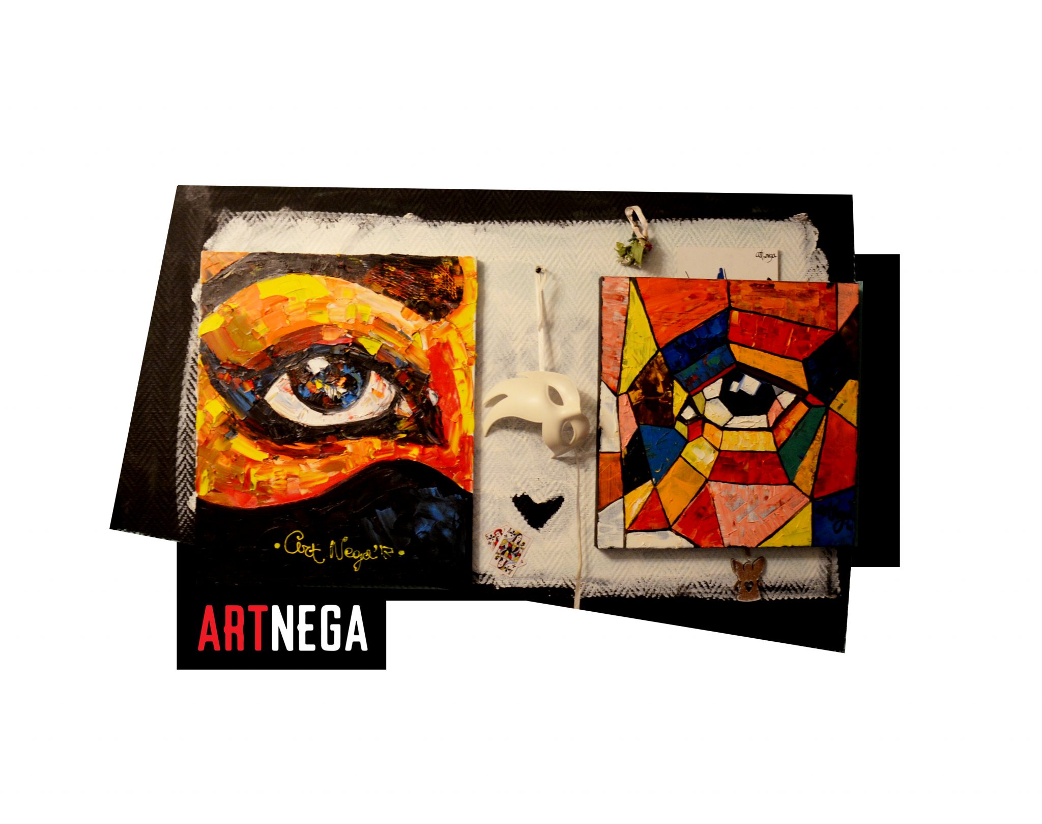 Studio kaif – это больше хулиганское ответвление, которое занимается граффити, что-то такое. А ARTNEGA - больше живопись. В ней я выделила для себя несколько стилистических подразделений. Это такая космическая абстракция, мазки, кубизм замешан. Непонятный abstracsion - это портретная живопись, например, Фрида Кало или «Амели». В прошлом году появилась тема глаз, нос пока не трогаем. Сюрр - мы не можем от него отказаться. Губы – тоже отдельная тема.