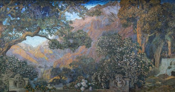 Обеспеченность, которой Пэрриш добился благодаря многочисленным коммерческим иллюстрациям позволила ему к 1931 году наконец «покончить с девушками на камнях» и заняться тем, к чему у него особенно лежала душа — пейзажной живописью. Она уже не приносила такой доход, но доставляла невероятное наслаждение. Его пейзажи также отличаются яркостью красок и тихой и мирной атмосферой, в которой еще остался мотив чего-то сказочного.