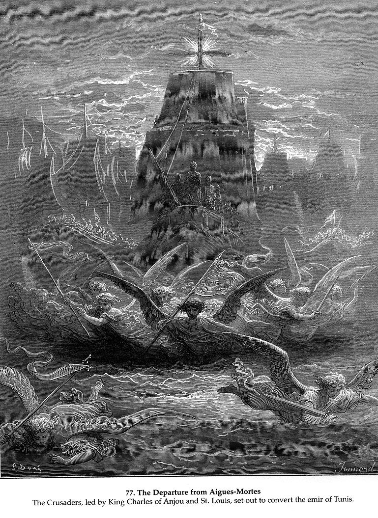 Несколько лет Доре провел в путешествиях. В своей поездке по Испании он собрал обширный материал, позднее использованный для создания иллюстраций к «Дон Кихоту» Сервантеса. В этот же период он написал множество гравюр для других изданий. Среди них «Сказки» Шарля Перро, «Потерянный рай» Мильтона и «Басни» Лафонтена.