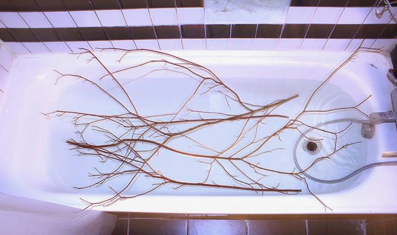 Artifex: Да, но в своих работах ты переносишь природу в урбанистическое пространство. Раскладываешь веточки на лестничной клетке или укладываешь их эстетично в ванне. Делаешь скульптуры с цветами внутри. Все эти вещи, так или иначе, синтезируются с городом.