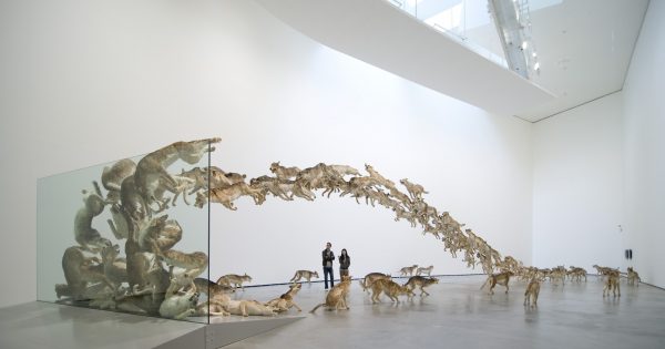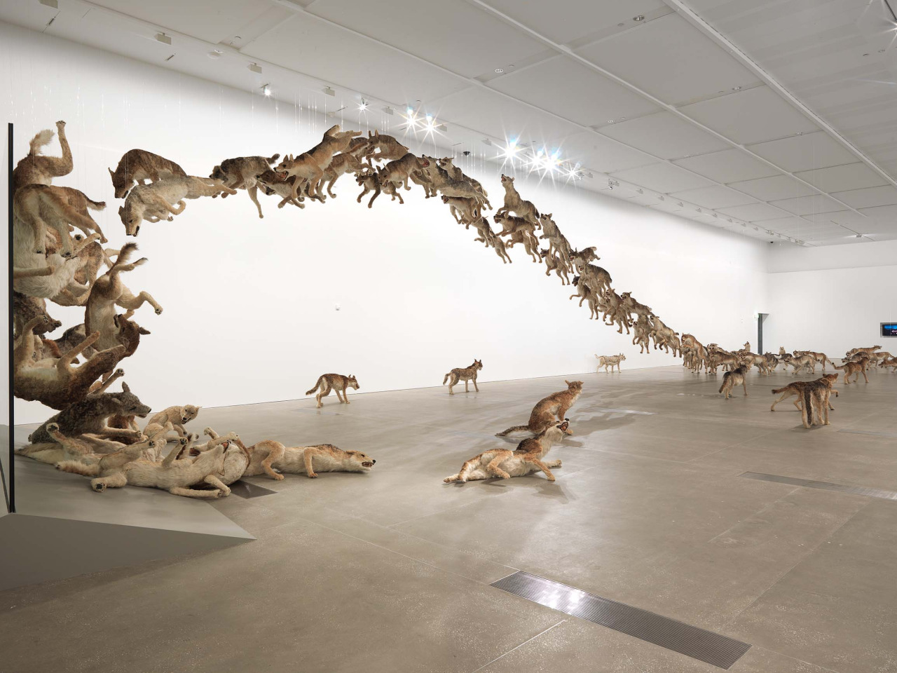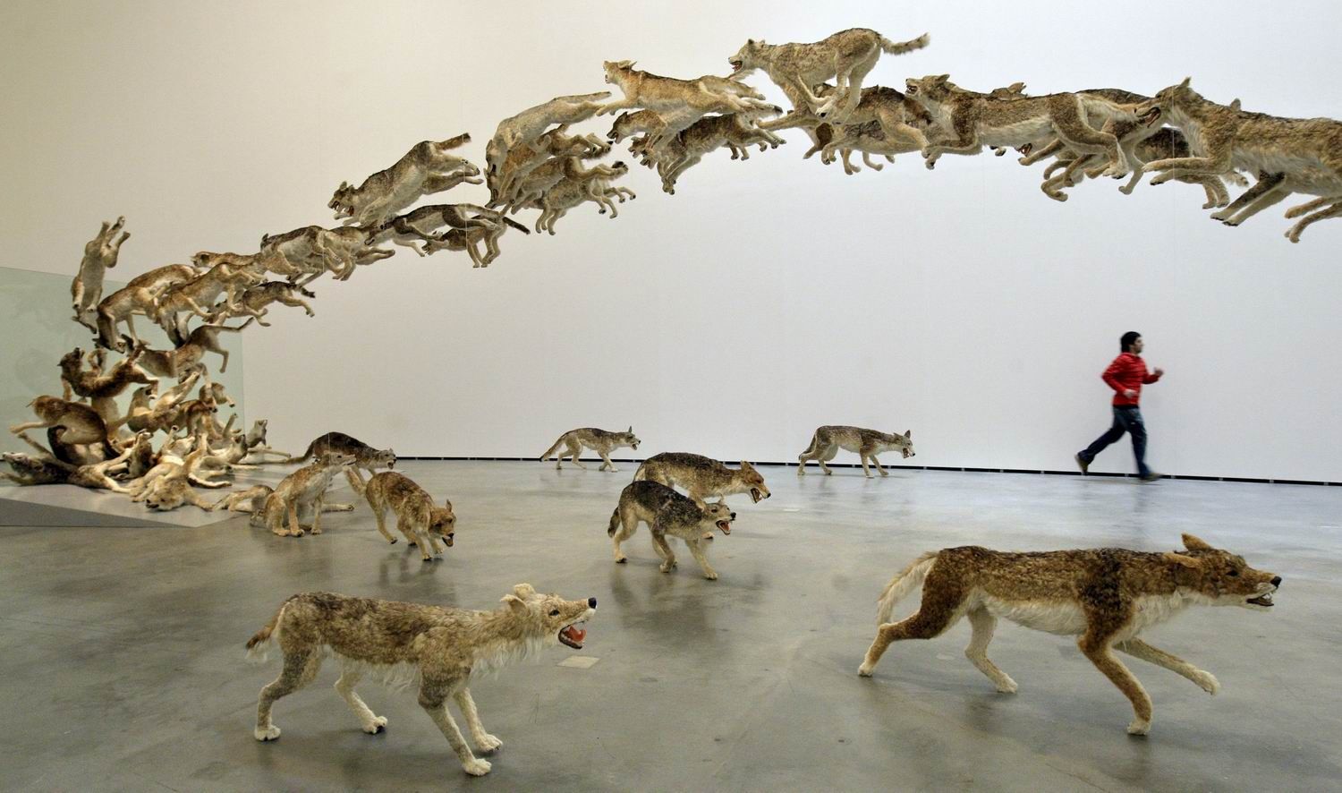 Этот художник для своей персональной выставки в Музее Соломона Гуггенхайма в Берлине изобрел поражающую воображение инсталляцию под названием Head On. Творение Цая изображает стаю из девяноста девяти волков в натуральную величину, бьющихся о стену из стекла и снова возвращающихся в начало.