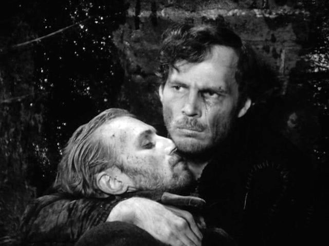Учёные антропологи подсчитали, что 90% времени всей эволюции человека было отдано борьбе за выживание, когда убийство и каннибализм считались нормой. XX век словно открыл широкие ворота тем демонам, которые долгое время находились под спудом. Великая война словно сделала легитимными все звериные инстинкты человека. Фильмы же о войне спорят с этим. Их общая философия проста: человек всё равно создание божие. Вот этому преодолению демона разрушения в себе и посвящена лента Ларисы Шепитько «Восхождение». Повесть Василия Быкова, по которой поставлена эта картина, называлась «Сотников». Л. Шепитько уже в названии задаёт вектор духовного движения. Это противостояние Христа (Борис Плотников) и Иуды (Владимир Гостюхин). А сама сцена казни отсылает нас к распятию и Голгофе. Это изображение страстей Христовых.