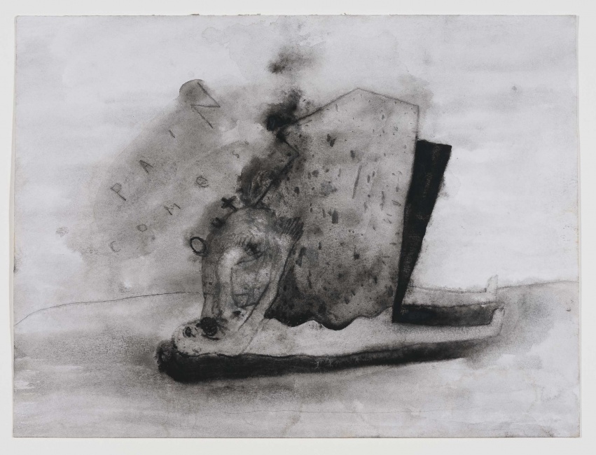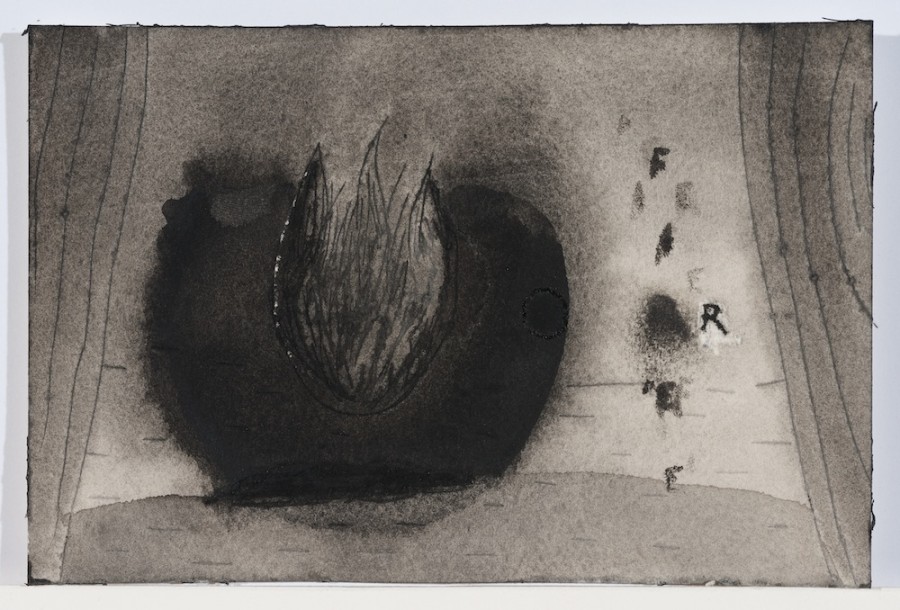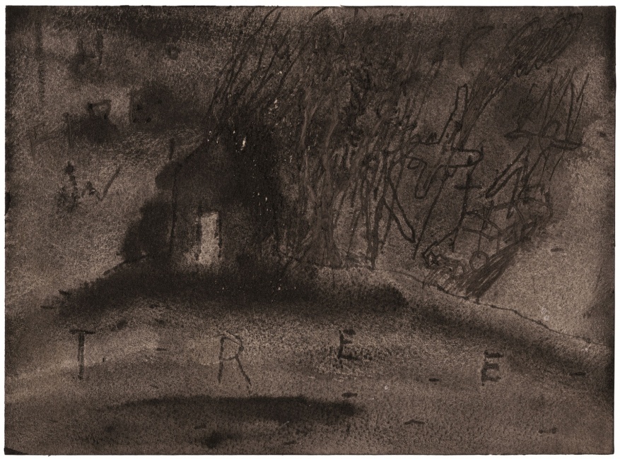 Не лишены некоторой иронии и акварели Линча. На них представлены расплывчатые формы в темных тонах: дом, боль, страх, черный огонь, пульсирующий в потерявшейся душе, цифры, буквы. Они подобны поплавкам в потемках реальности, за которыми где-то в толще угадываются силуэты поистине крупных и совсем уже неописуемых рыб. Сознание будто в полусне концентрируется на этих объектах и дает им названия — то исчерпывающе лаконичные, а то неожиданные и витиеватые.
