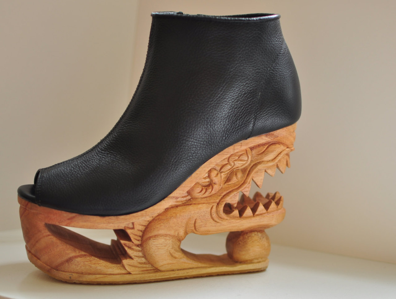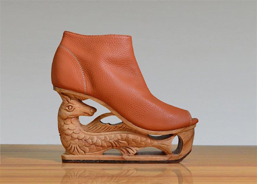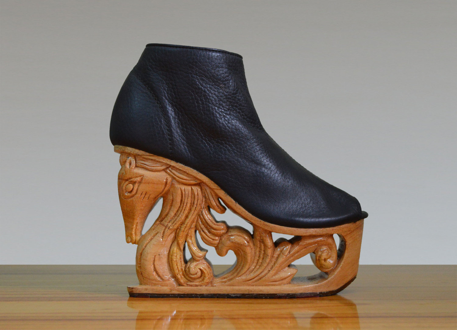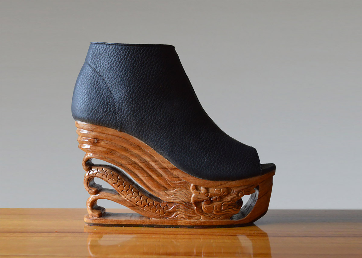 Каждая модель выполнена индивидуально вручную. Верхняя часть, непосредственно сидящая на ноге, делается из кожи, а нижняя – из дерева. Их подошва обычно сделана в форме высокой платформы, однако трудно представить, чтобы кому-то пришла в голову идея прогуляться в такой обуви по улице. Да и покупка даже одной пары – дело недешевое.