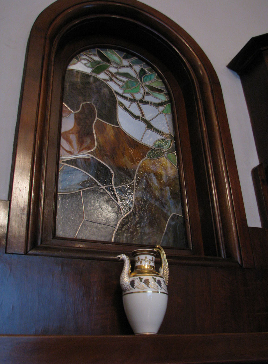 В поисках «крылатого» витража, известного по черно-белой фотографии, когда-то увиденной где-то, выяснилось, что ищу я то, что перекрыто книжным шкафом и уже давно не доступно для глаз, и, к слову, это вовсе не витражи с крыльями бабочек или стрекоз, как предполагалось ранее.