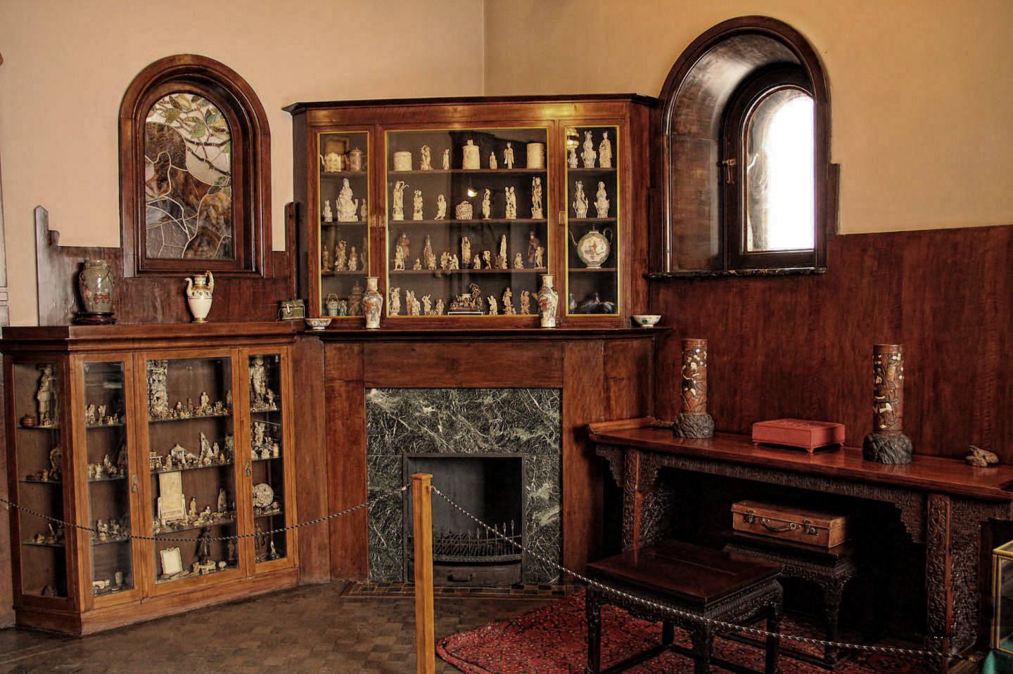 Здесь сохранилась первозданная обстановка дома писателя: спальня и гостиная с антикварной мебелью и предметами интерьера, масштабная библиотека, его кабинет с артефактами от исписанного блокнота и заточенных карандашей до шикарной коллекции нэцкэ XVIII-XX веков.