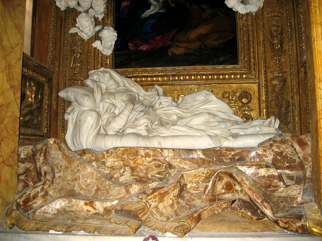 Еще никому не удавалось создать такое потрясающее изображение плотского наслаждения и духовного откровения, как это получилось у Бернини. Его монахини совсем не похожи на страшных фанатичных затворниц средних лет. Нет, это молодые женщины, которых переполняют чувства. Просто посмотрите на кровать Людовики. Тонкое кружево, шелковые простыни — не очень по-христиански. Ее правая рука в порыве страсти сжимает грудь, левая с силой вцепляется в живот, а по движению рясы становится ясно, какое буйство плоти происходит под ней.
