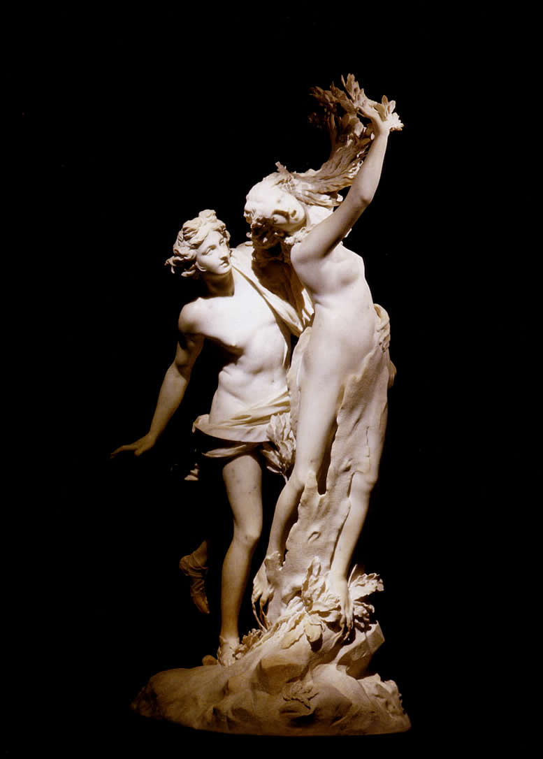 Настоящая страсть, рожденная в любви, — это всегда движение, это вихрь, захватывающий тела. Страсть подобна торнадо, и ее бешеное движение чувствуется в этой скульптуре везде. Но перед нами финал гонки, движение угасает, и страсть уже мертва. Ноги Дафны врастают в землю, руки превращаются в ветки, и Аполлон замедляет в недоумении свой бег, ощутив в левой руке не желанную женскую плоть, не кожу, к которой он так мечтал прикоснуться, а грубую древесную кору.