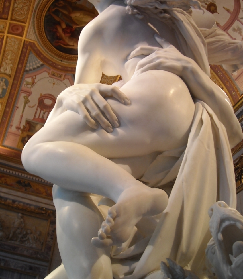 «Похищение Прозерпины» − здесь работал уже не мальчик, а молодой мужчина, знающий, что такое настоящая страсть. Когда ты видишь эту скульптуру, очень сложно поверить, что перед тобой холодный мрамор, что вся композиция весит несколько тонн. Прозерпина как будто взлетает вверх, пытаясь вырваться из крепких объятий Плутона, а пальцы подземного бога вцепляются в ее юную плоть. Это сцена совершающегося насилия, когда страсть настолько сильна, что ее невозможно сдержать.